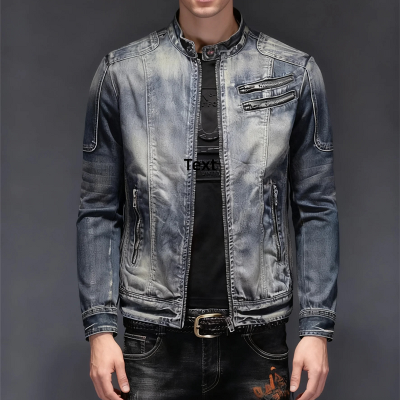 Veste en denim à manches longues avec col montant