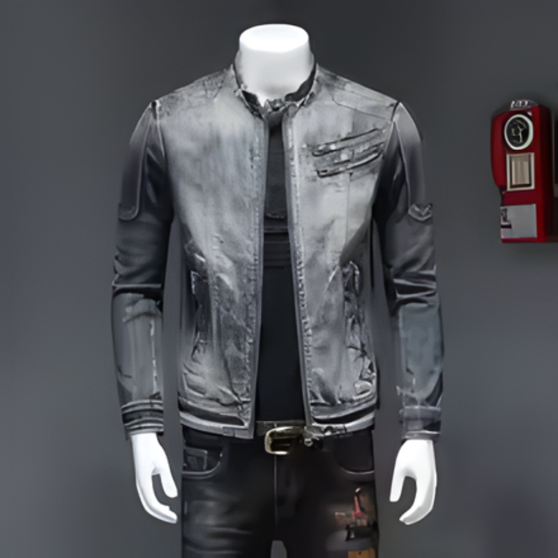 Cette veste en denim présente un col montant, des manches longues et des poches. Sa structure offre une silhouette définie, adaptée à un usage quotidien.