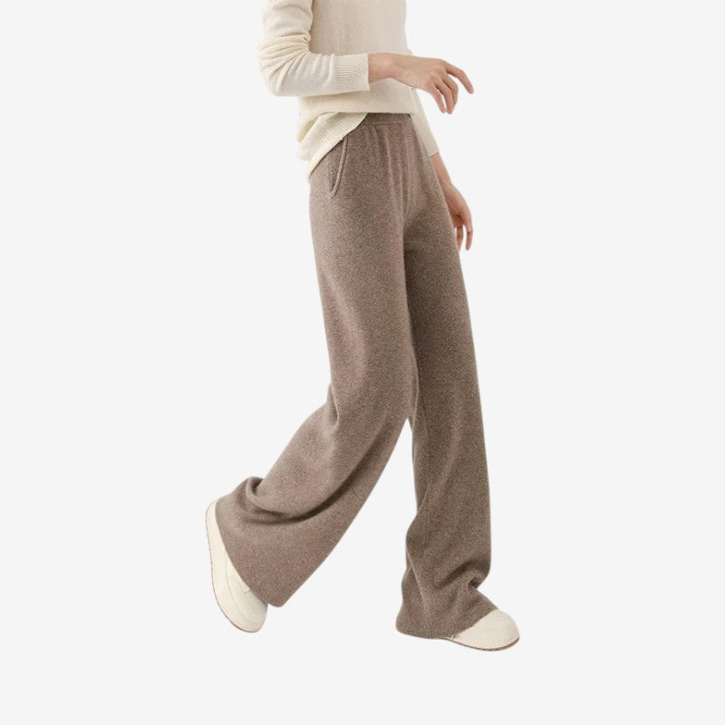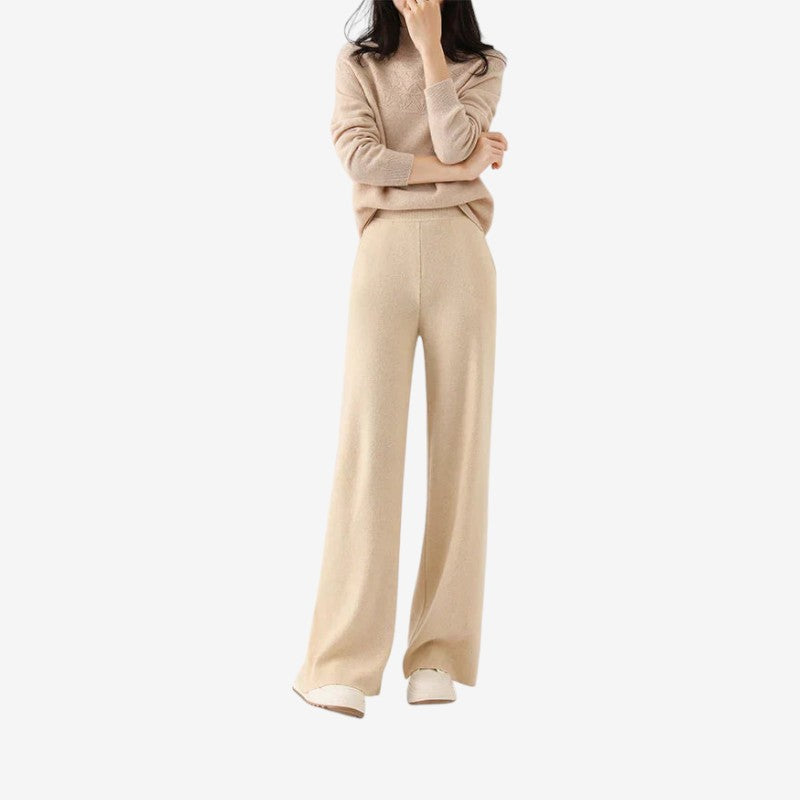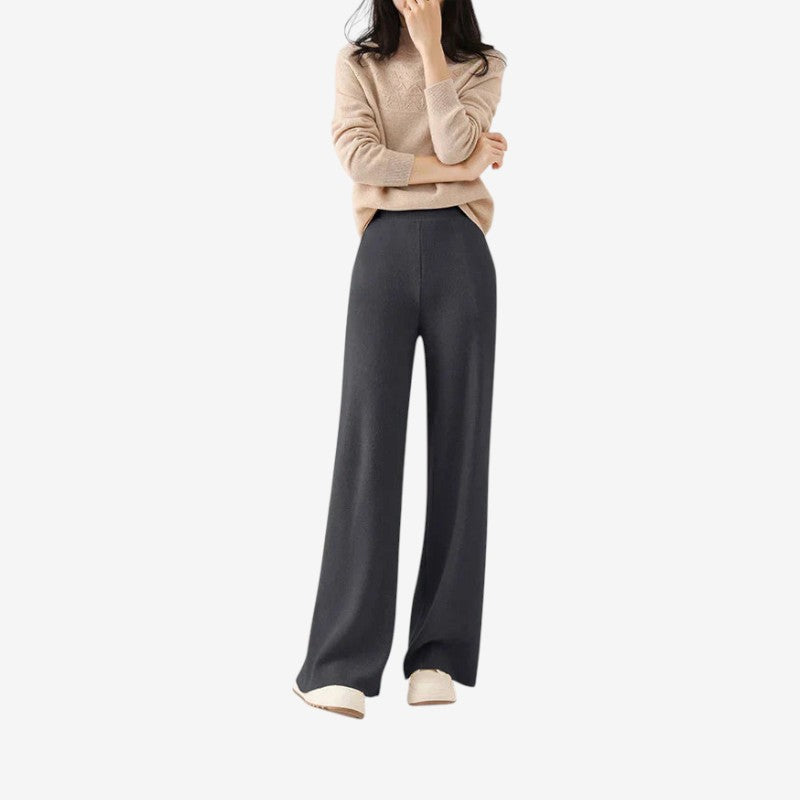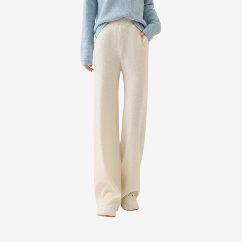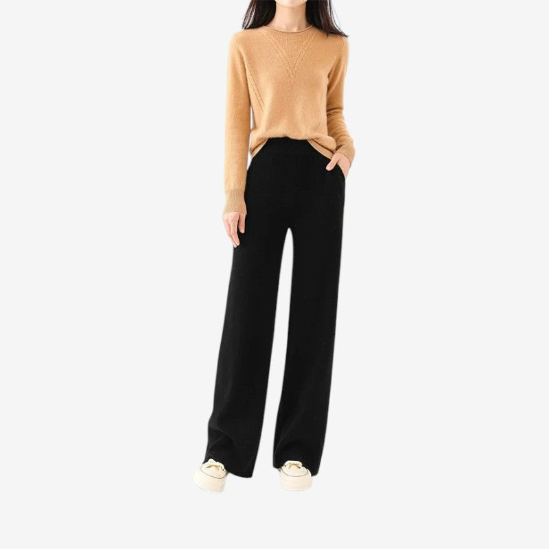 Elodie – Pantalon Taille Haute à Jambe Large avec Poches