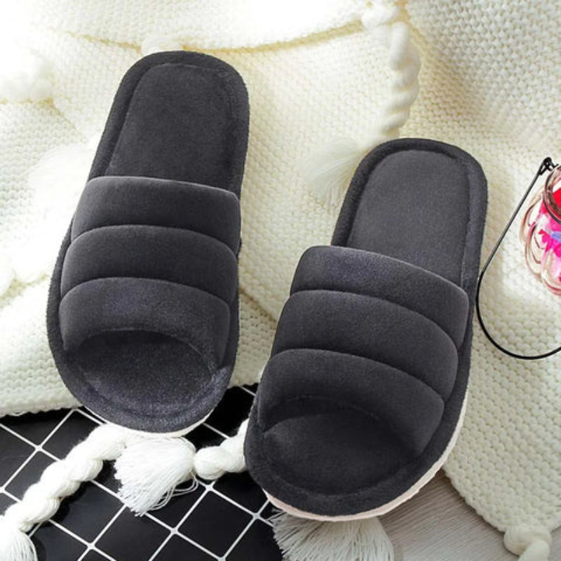 Evelyn – Chaussons en peluche antidérapants avec semelle plate
