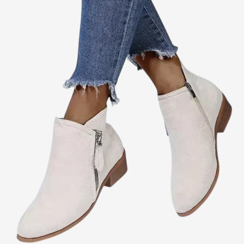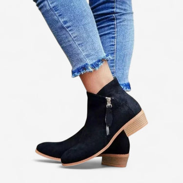 Les bottines Karen sont dotées d'une fermeture éclair pour un enfilage facile et d'un talon carré pour plus de stabilité. Avec leur design moderne, ces bottines sont parfaites pour des occasions décontractées ou semi-formelles, offrant un look élégant et contemporain.