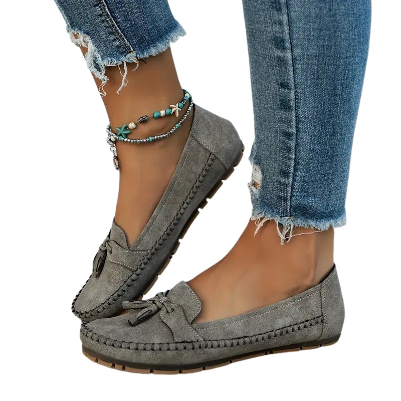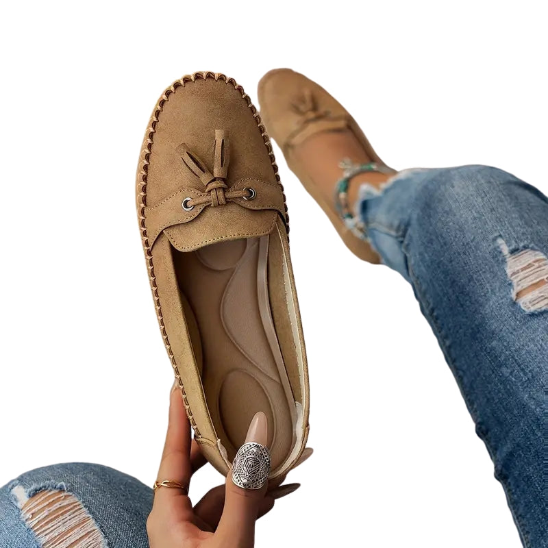Nora – Mocassins décontractés en suède avec détail nœud et couture mocassin