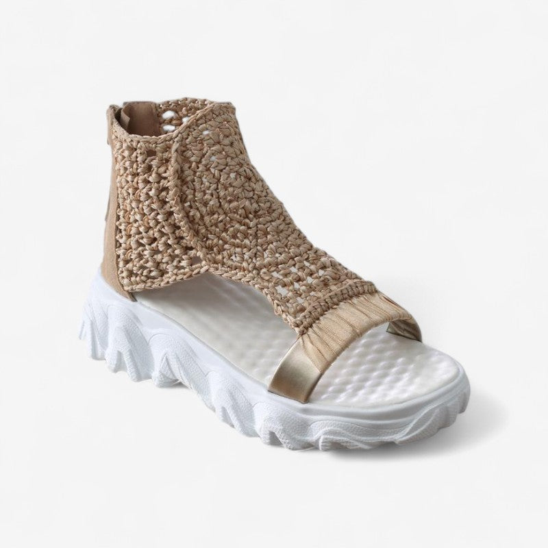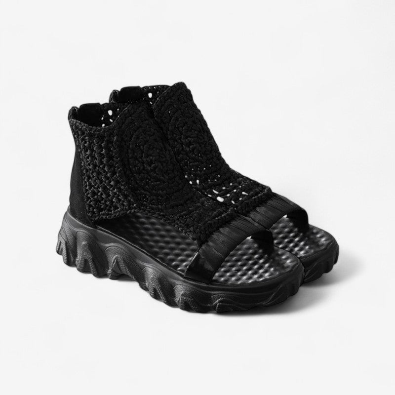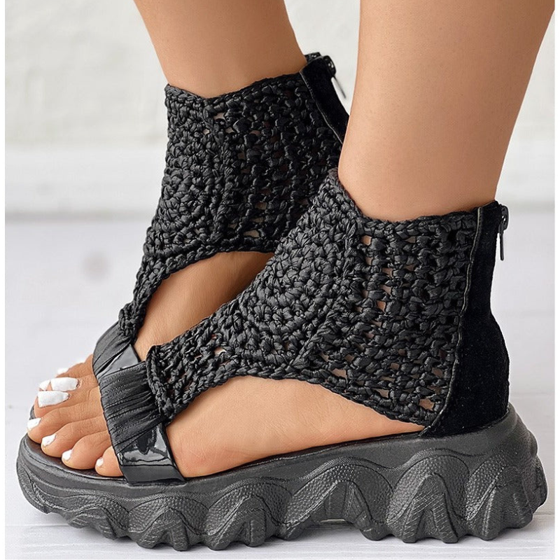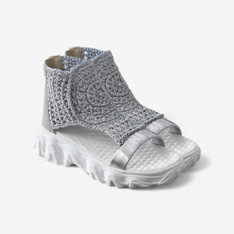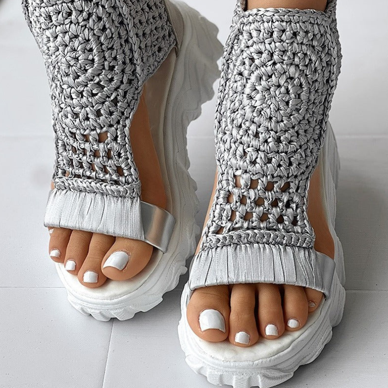 Olivia – Sandales en maille à semelle plate et talon compensé