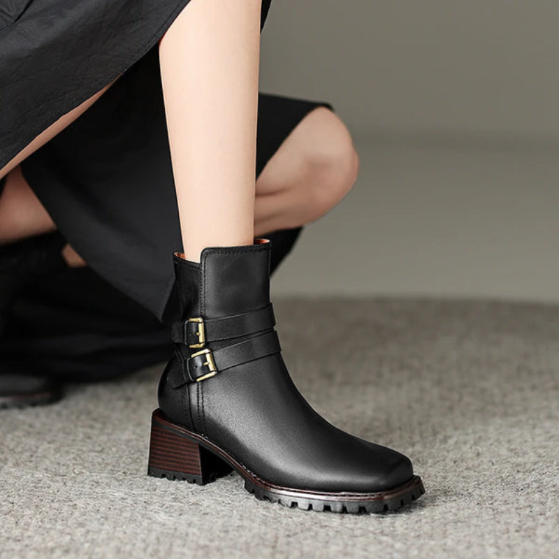 Ruby – Bottines avec fermeture éclair latérale, talon épais et brides réglables