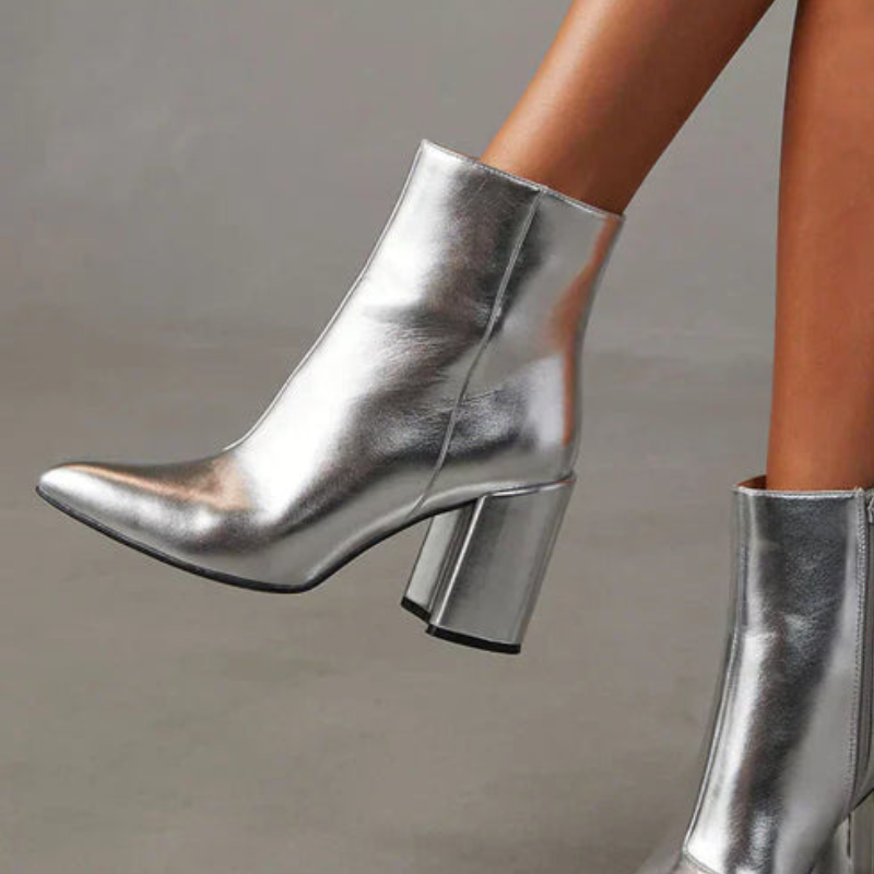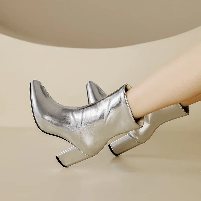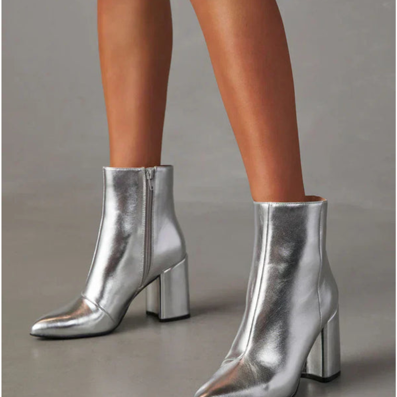 Theresa – Bottines à bout pointu fermeture éclair et talon carré