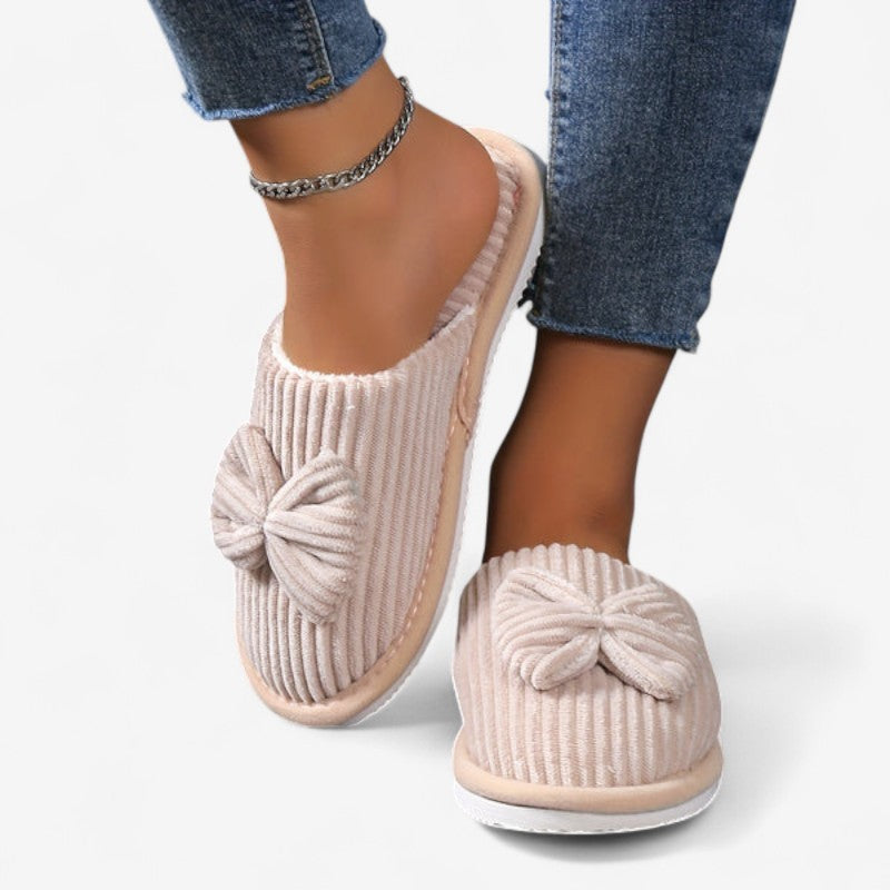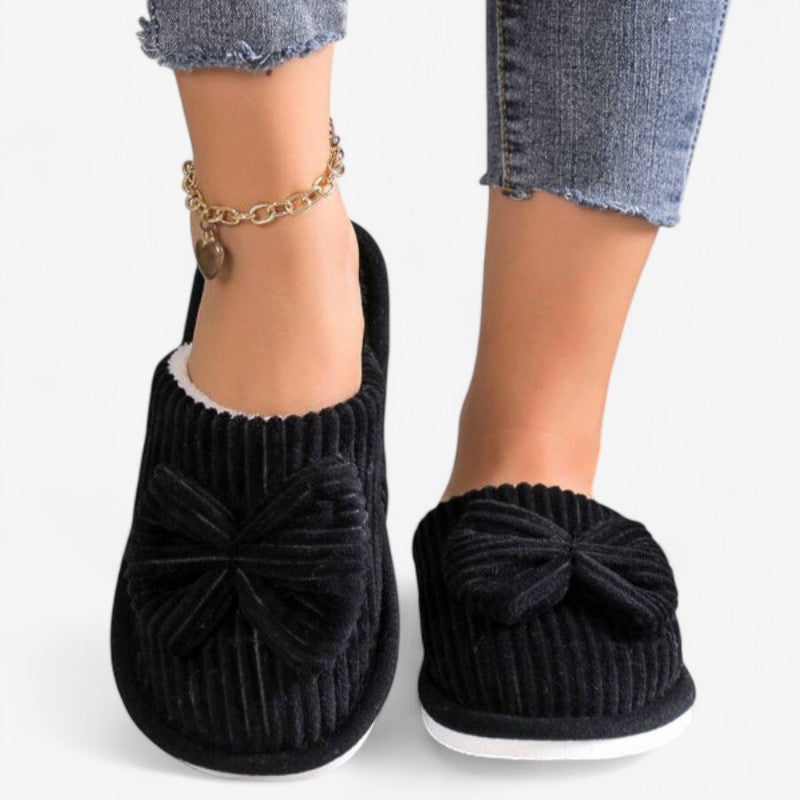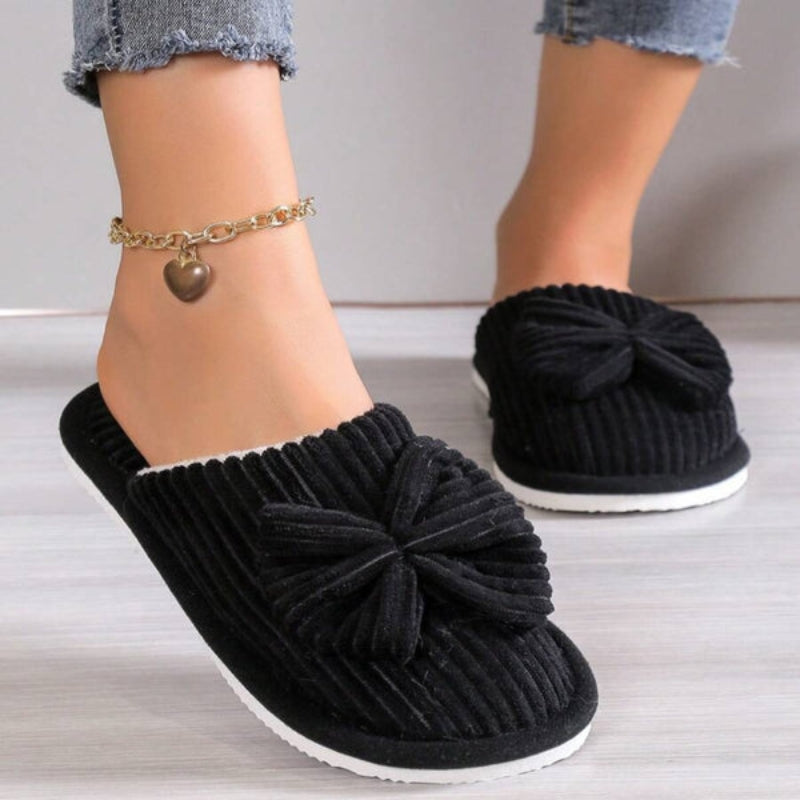 Valérie – Chaussons plats à enfiler avec bout rond et nœud