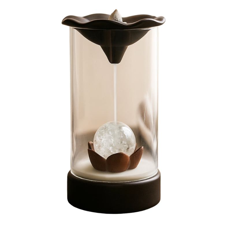 Le brûleur d’encens AromaFlow Backflow allie design élégant et fonctionnalité relaxante. La fumée descend en un motif hypnotisant, mis en valeur par la lumière LED intégrée, créant une atmosphère détendue. Compact et stylé, il s’adapte parfaitement aux chambres, salons ou espaces de méditation.