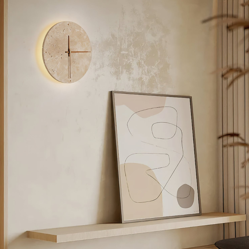 TimeCraft – Horloge murale au design intemporel forme ronde et art en pierre naturelle