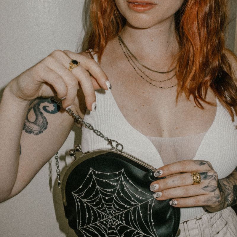 Emery – Sac à main avec fermoir toile d’araignée, bandoulières en chaîne et design convertible