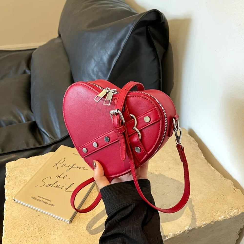 Fleur – Sac à bandoulière en forme de cœur avec poches zippées
