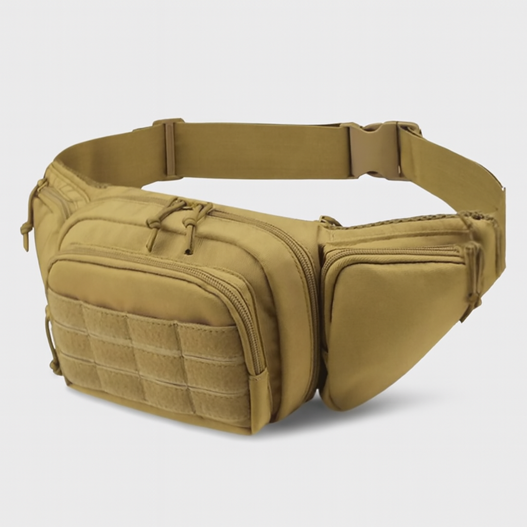 Le sac banane tactique Kerem dispose de multiples poches zippées pour un rangement sécurisé et d’une sangle réglable pour un ajustement confortable. Son design spacieux permet de transporter vos essentiels tout en les gardant bien organisés.