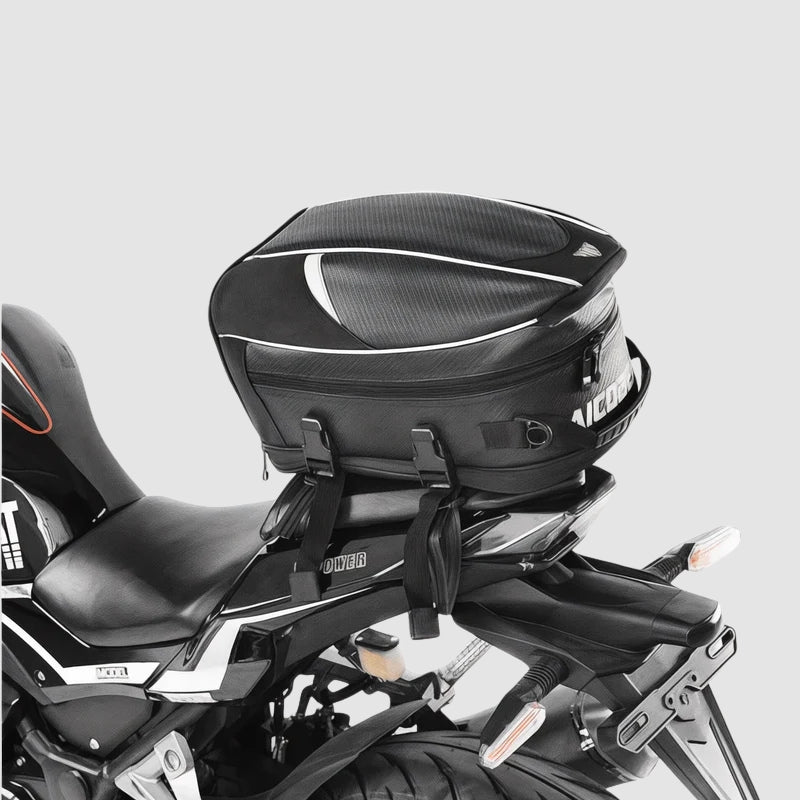 Cette sacoche de selle multifonctionnelle offre un espace de rangement généreux pour vos essentiels lors de vos trajets à moto. Le grand compartiment principal et les poches supplémentaires permettent de garder vos affaires organisées, tandis que les sangles réglables assurent un maintien sécurisé sur la selle arrière.