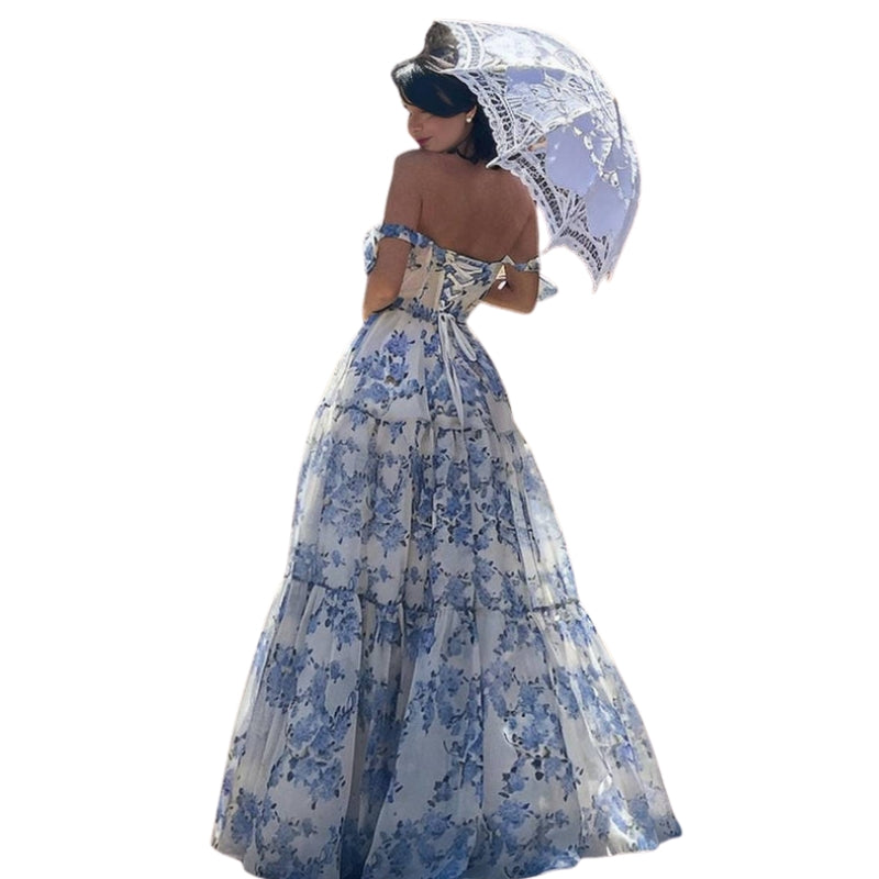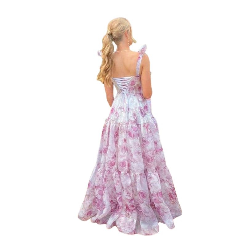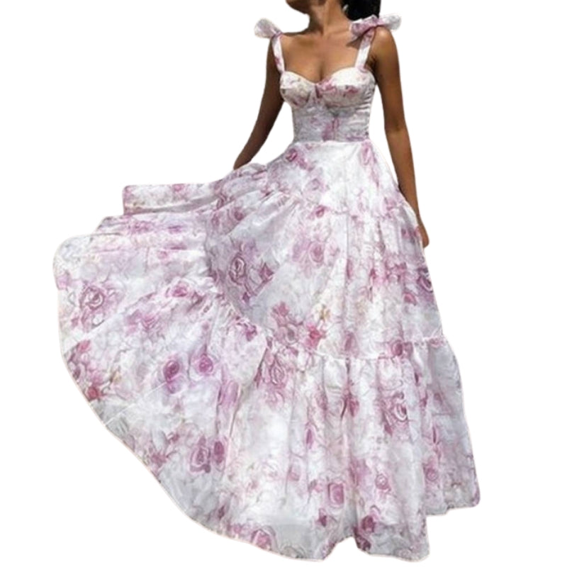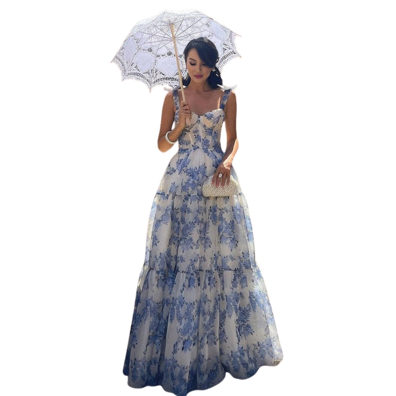 Amelie – Robe Longue à Imprimé Floral avec Bretelles Spaghetti