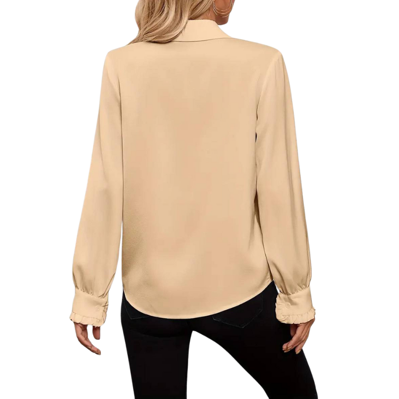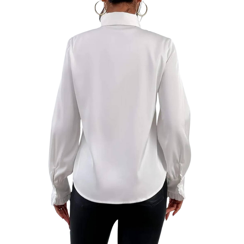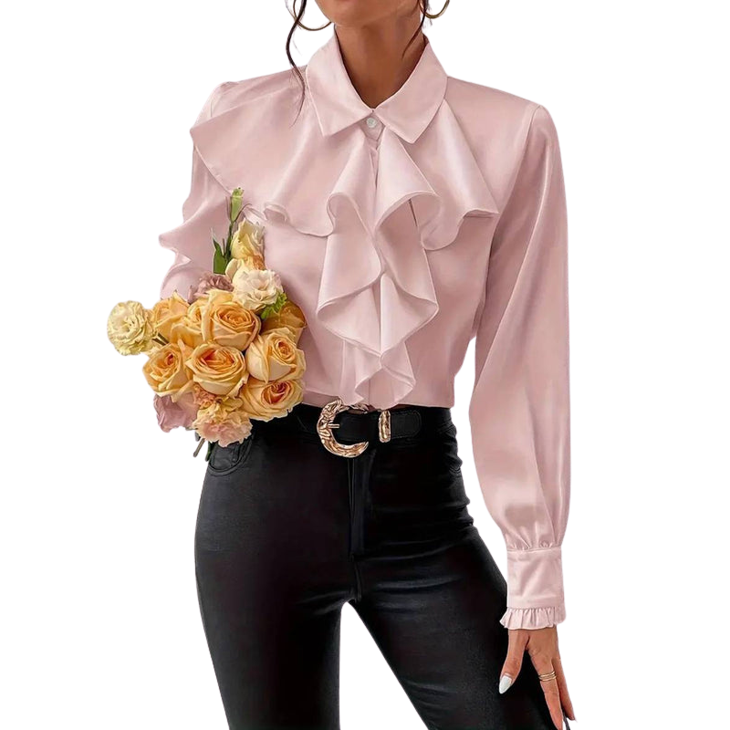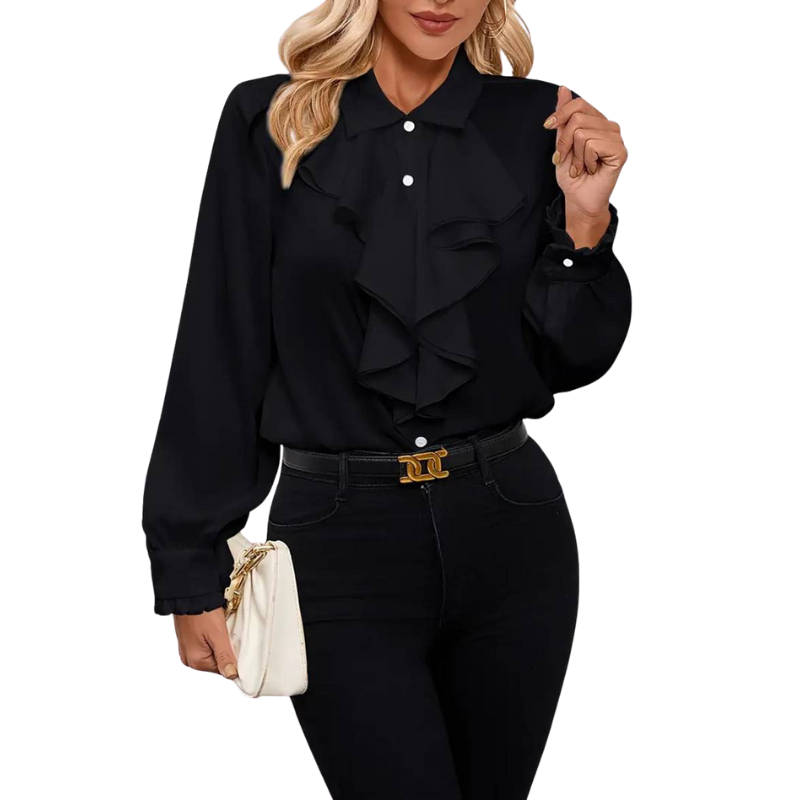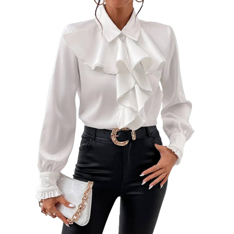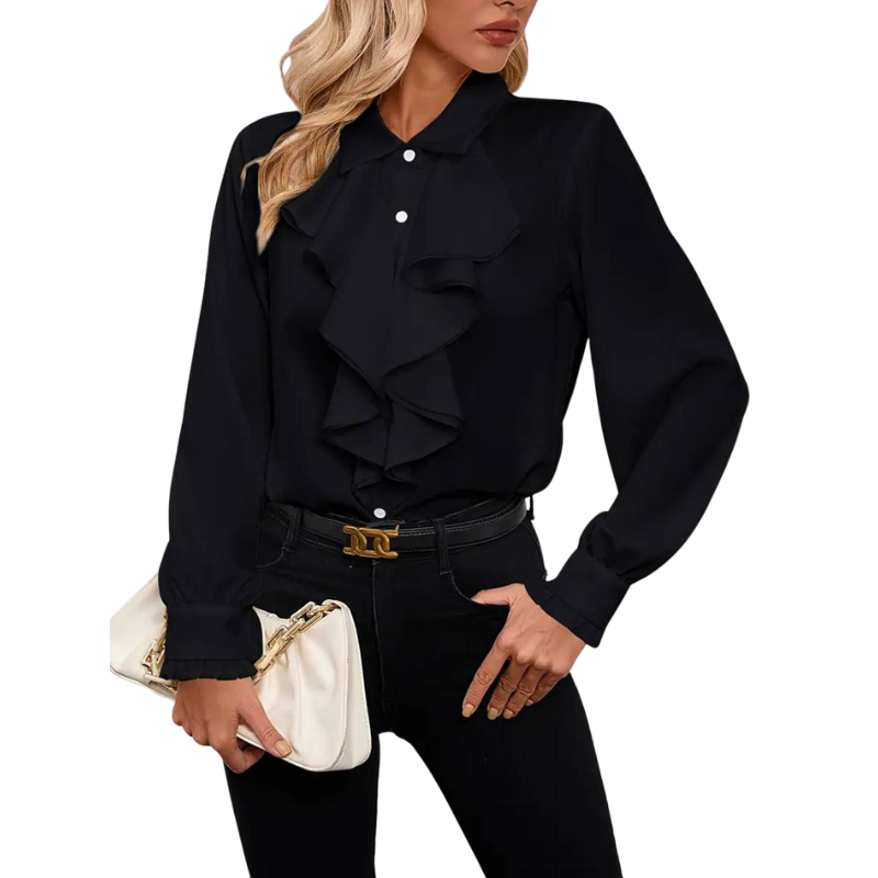 Ashley – Blouse boutonnée avec col à volants et manches bouffantes