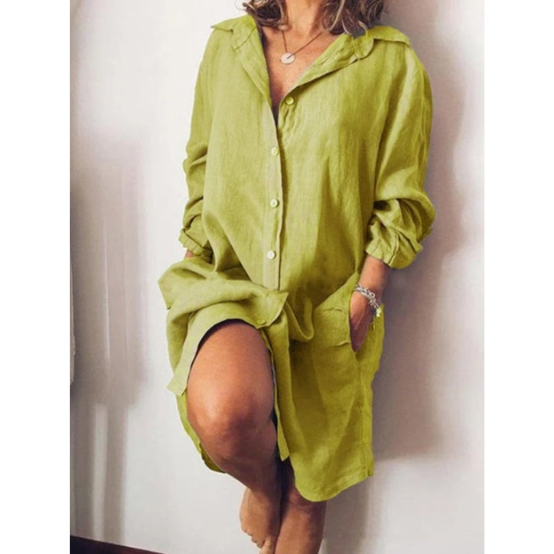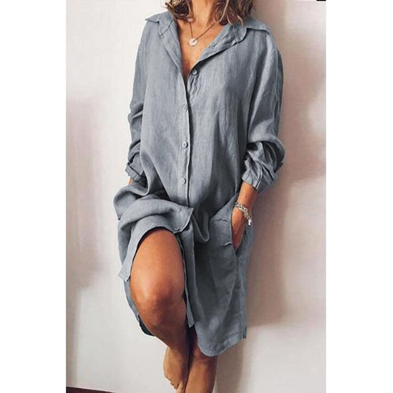 Elysia - Robe chemise oversize tendance avec fermeture à boutons et manches longues
