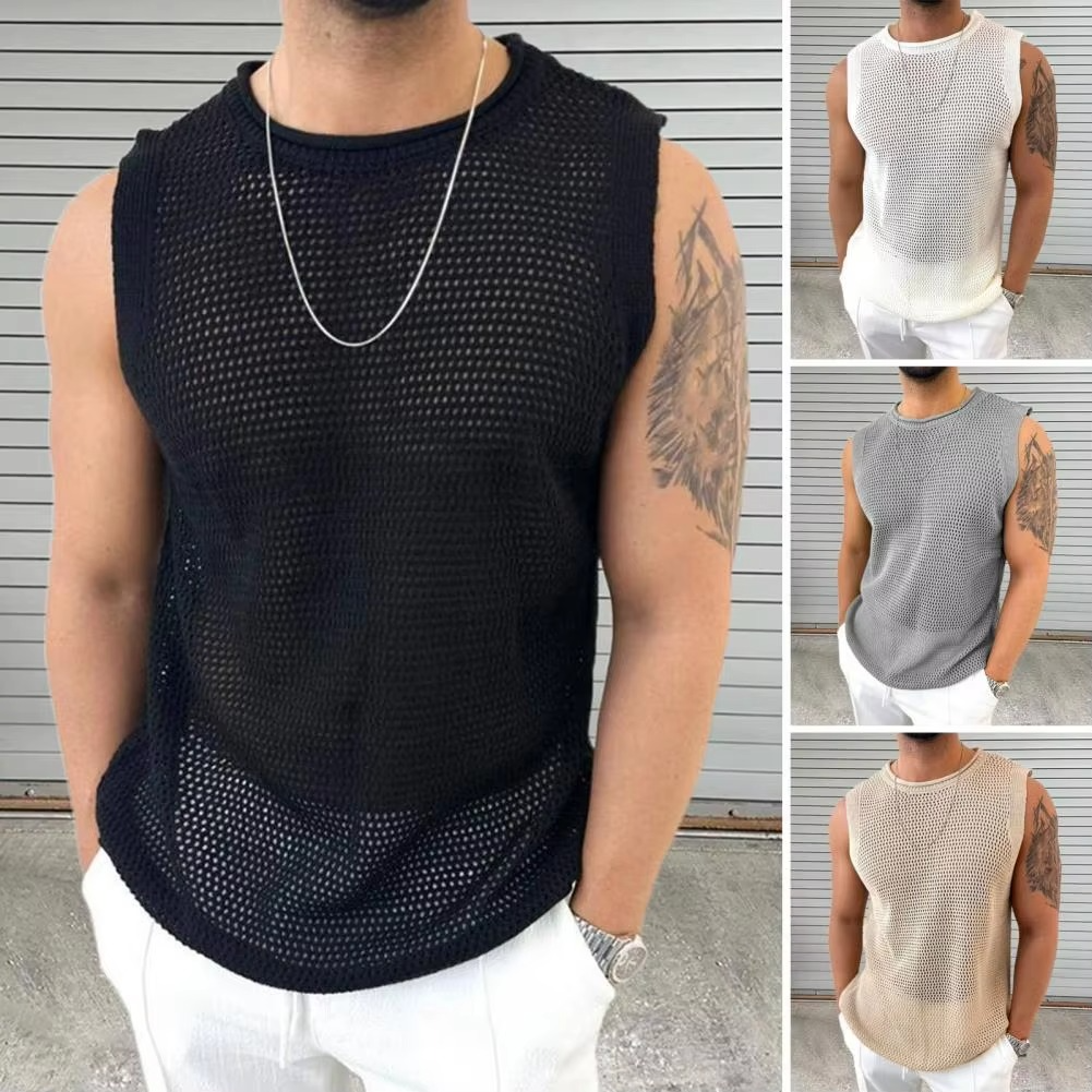 Harrison - Débardeur décontracté en crochet à motif ajouré et col rond