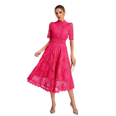 • Style : Robe midi à manches courtes avec détails en dentelle ajourée