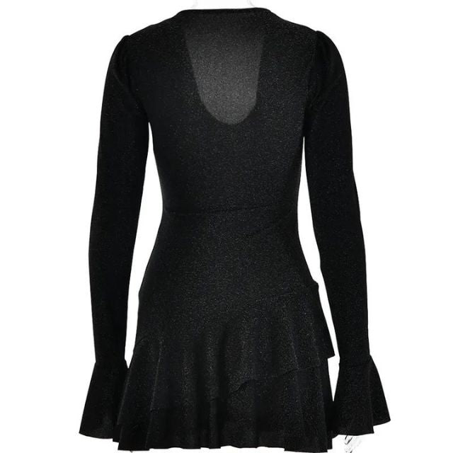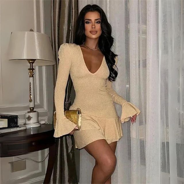 Isla – Mini-robe tendance avec décolleté en V profond et manches longues