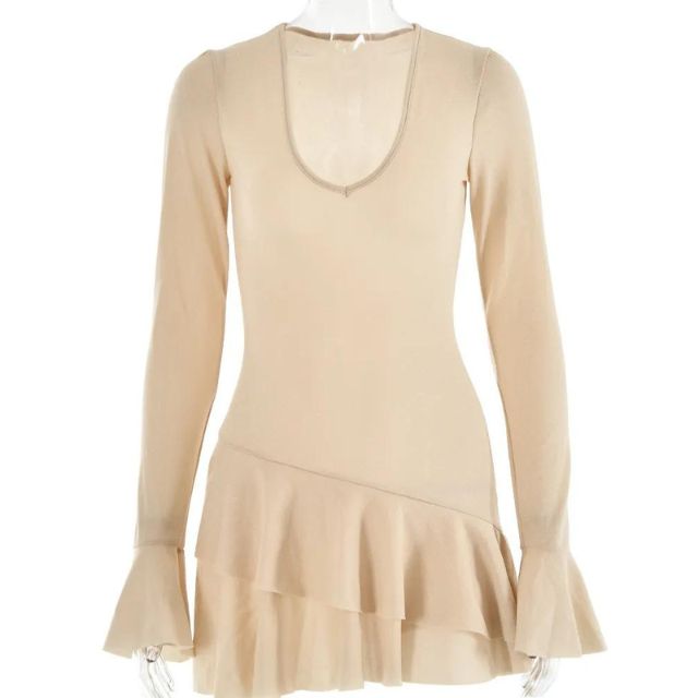 Cette mini-robe arbore un décolleté en V profond qui attire l'attention sans effort. Ses manches longues ajoutent une touche sophistiquée à sa silhouette audacieuse. Sa coupe générale lui confère une allure élégante et raffinée. C'est la pièce idéale pour se sentir confiante et stylée.