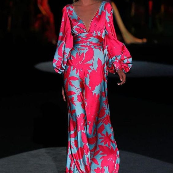 Juliana – Robe longue élégante avec décolleté en V profond et manches longues