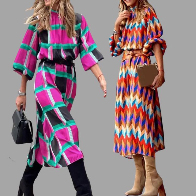 La robe Julissa se distingue par son motif à chevrons vif qui ajoute du mouvement et de la profondeur au regarder. L'encolure ronde offre une finition nette et classique, tandis que les manches longues créent une forme gracieuse et équilibrée. La ceinture incluse définit la taille, donnant à la silhouette une structure sans perdre sa fluidité.