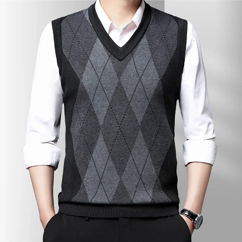 Leo – Gilet pull classique sans manches avec encolure en V et coupe décontractée