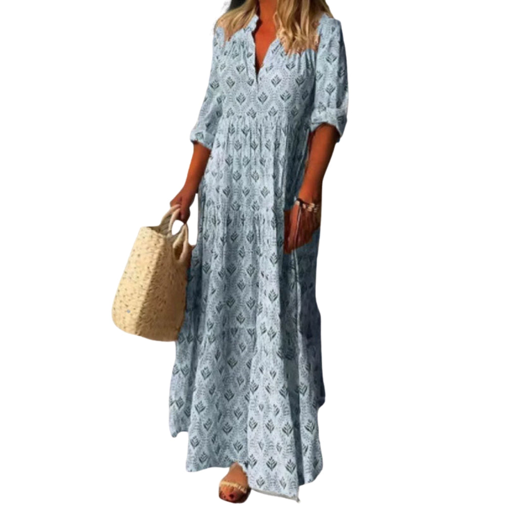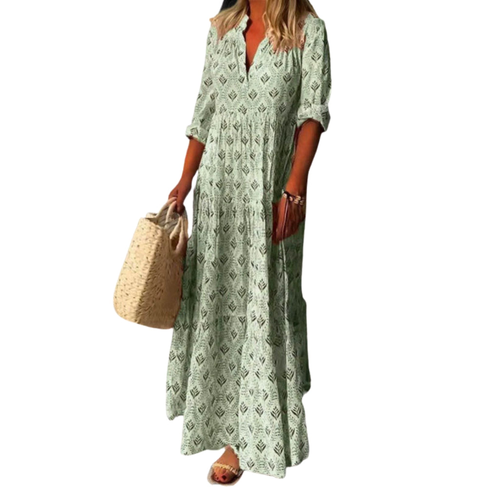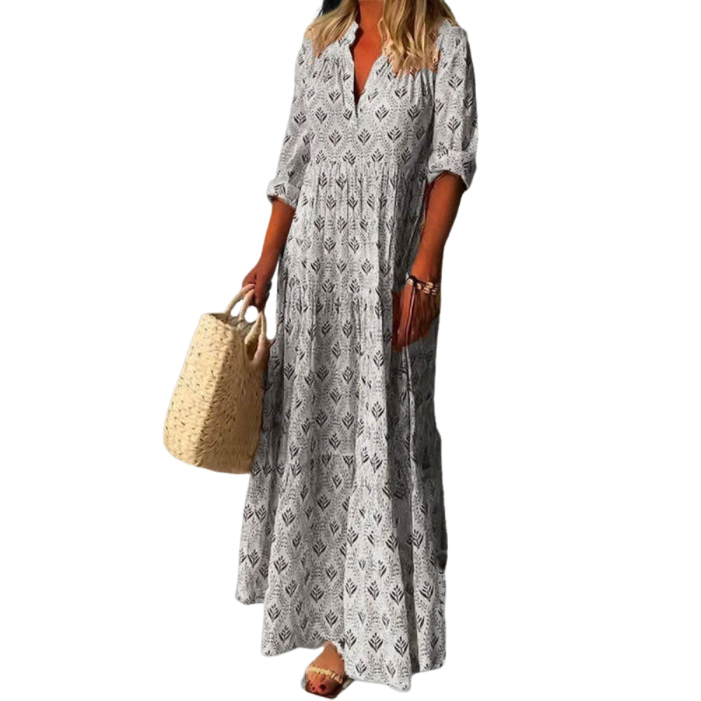 Leona – Robe Imprimée à Manches Longues avec Col en V