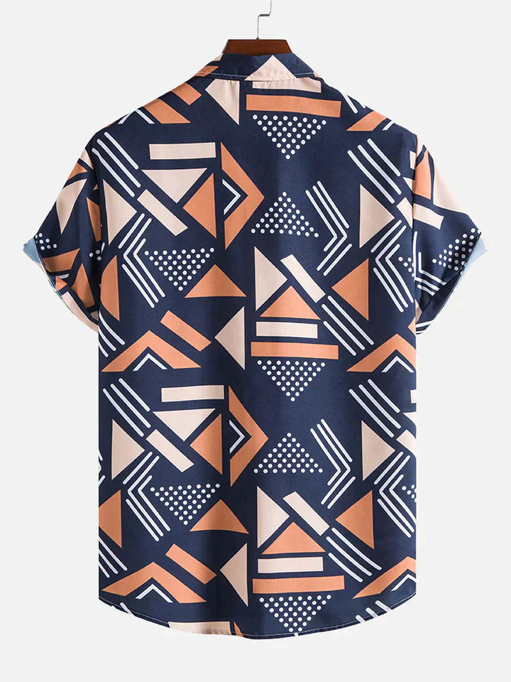 Cette chemise présente un imprimé triangulaire géométrique audacieux qui ajoute une touche contemporaine à votre garde-robe. Conçue pour les personnes soucieuses du style, elle offre une esthétique unique qui vous distingue. Son design accrocheur en fait un choix fantastique pour celles qui cherchent à faire une déclaration tout en profitant du confort quotidien.