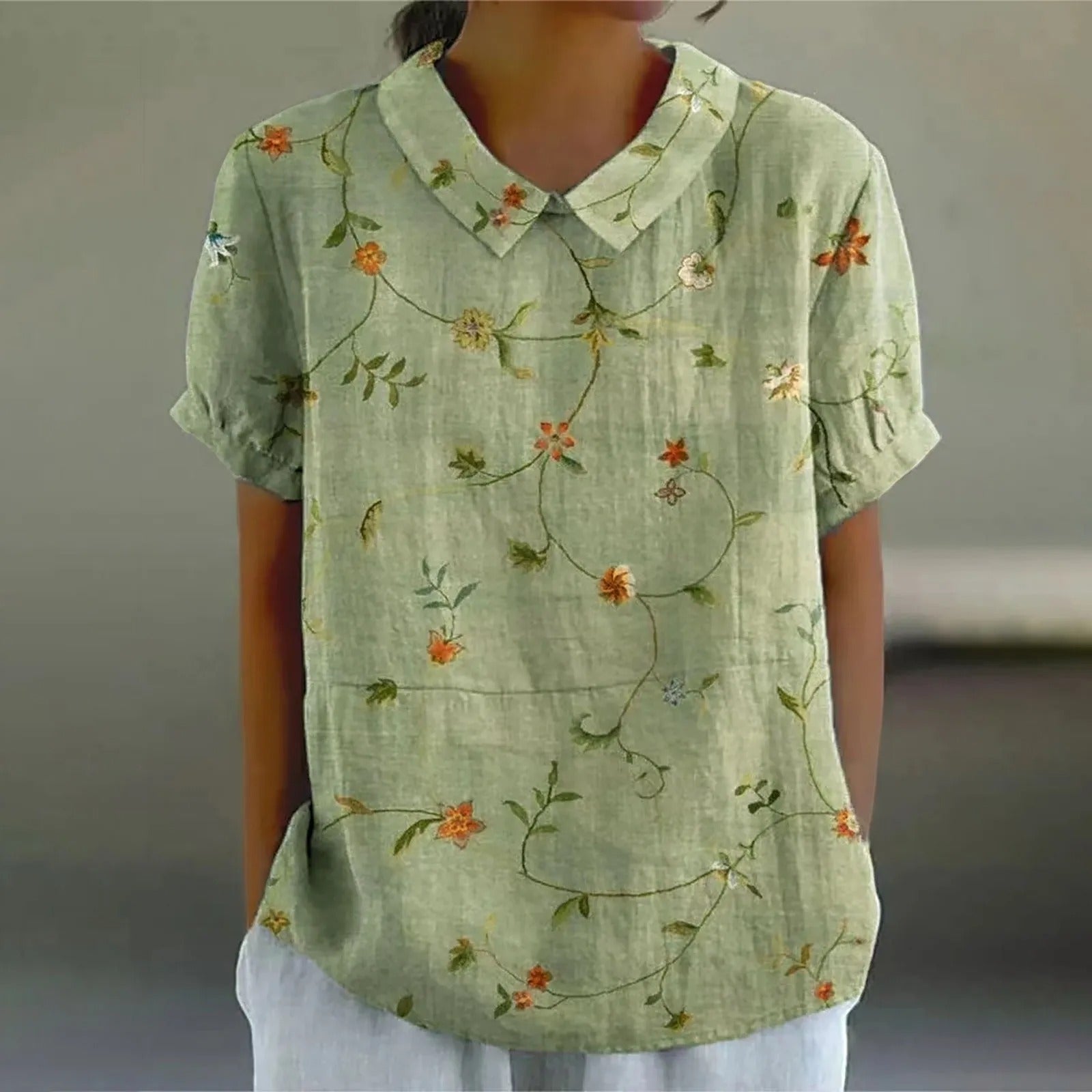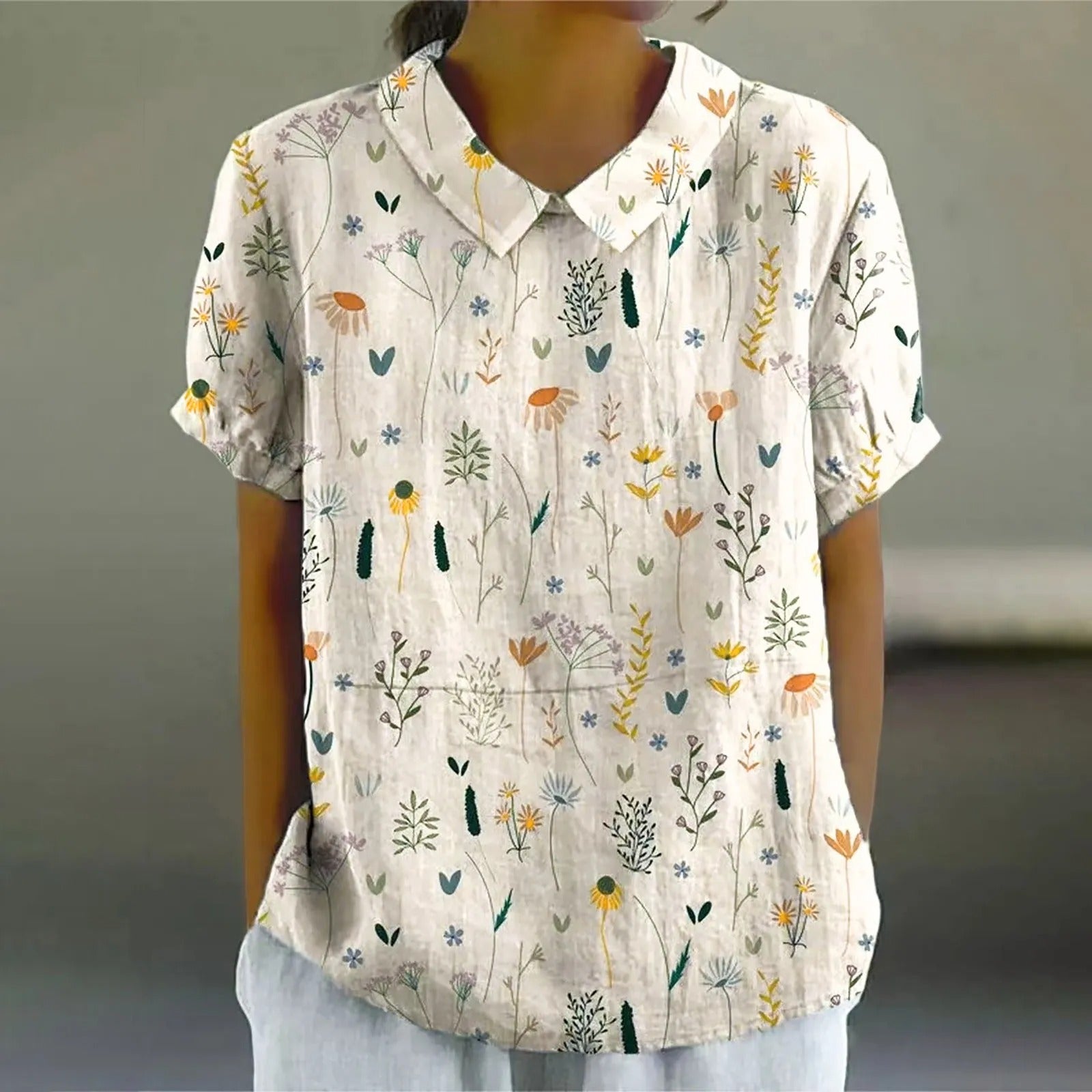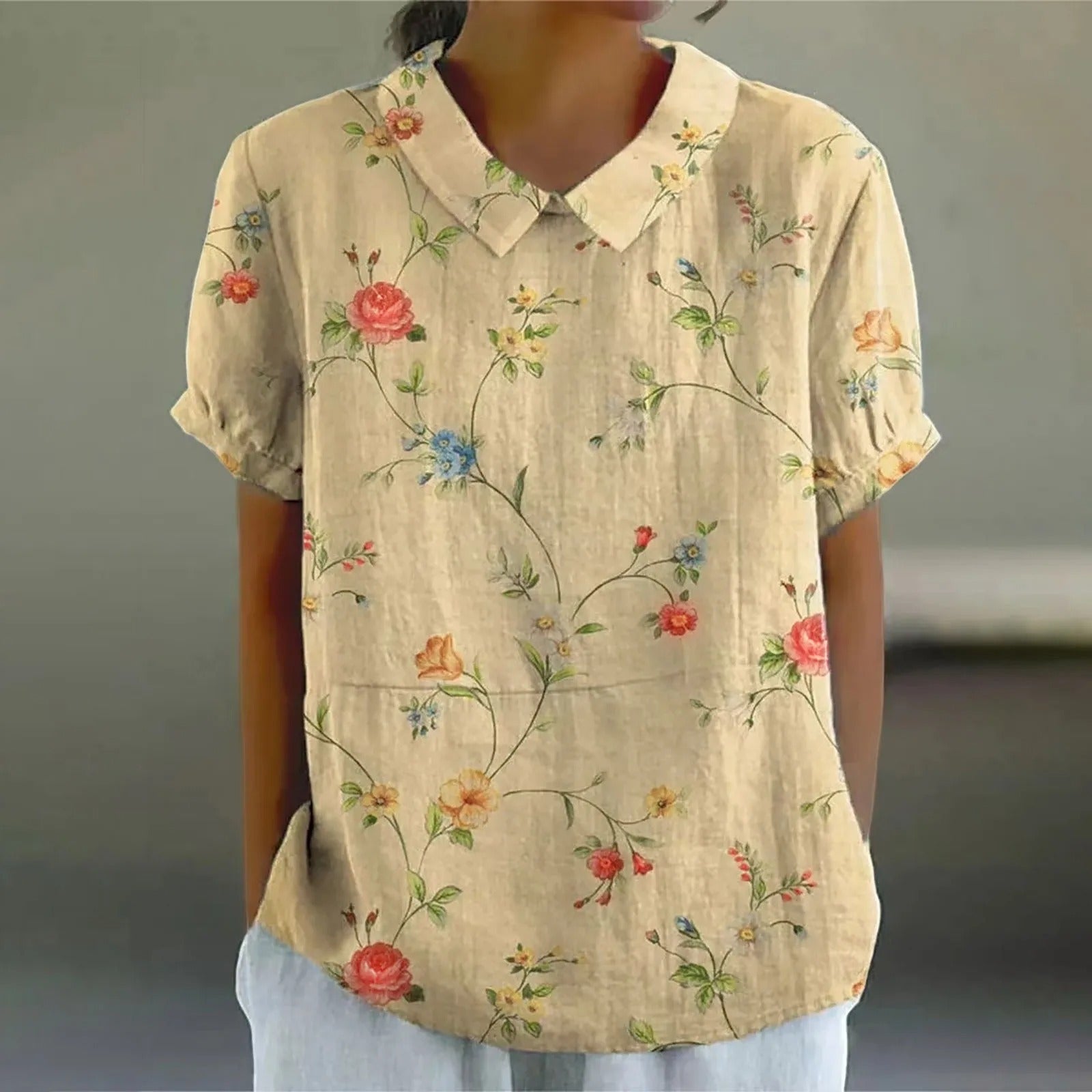 Lily – Chemisier boutonné fleuri à manches retroussées et coupe décontractée