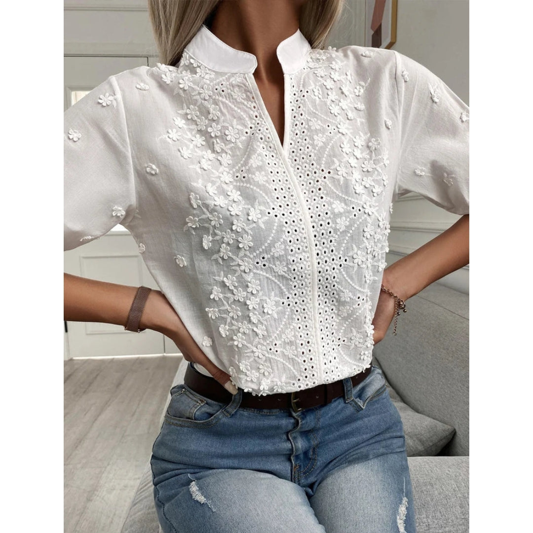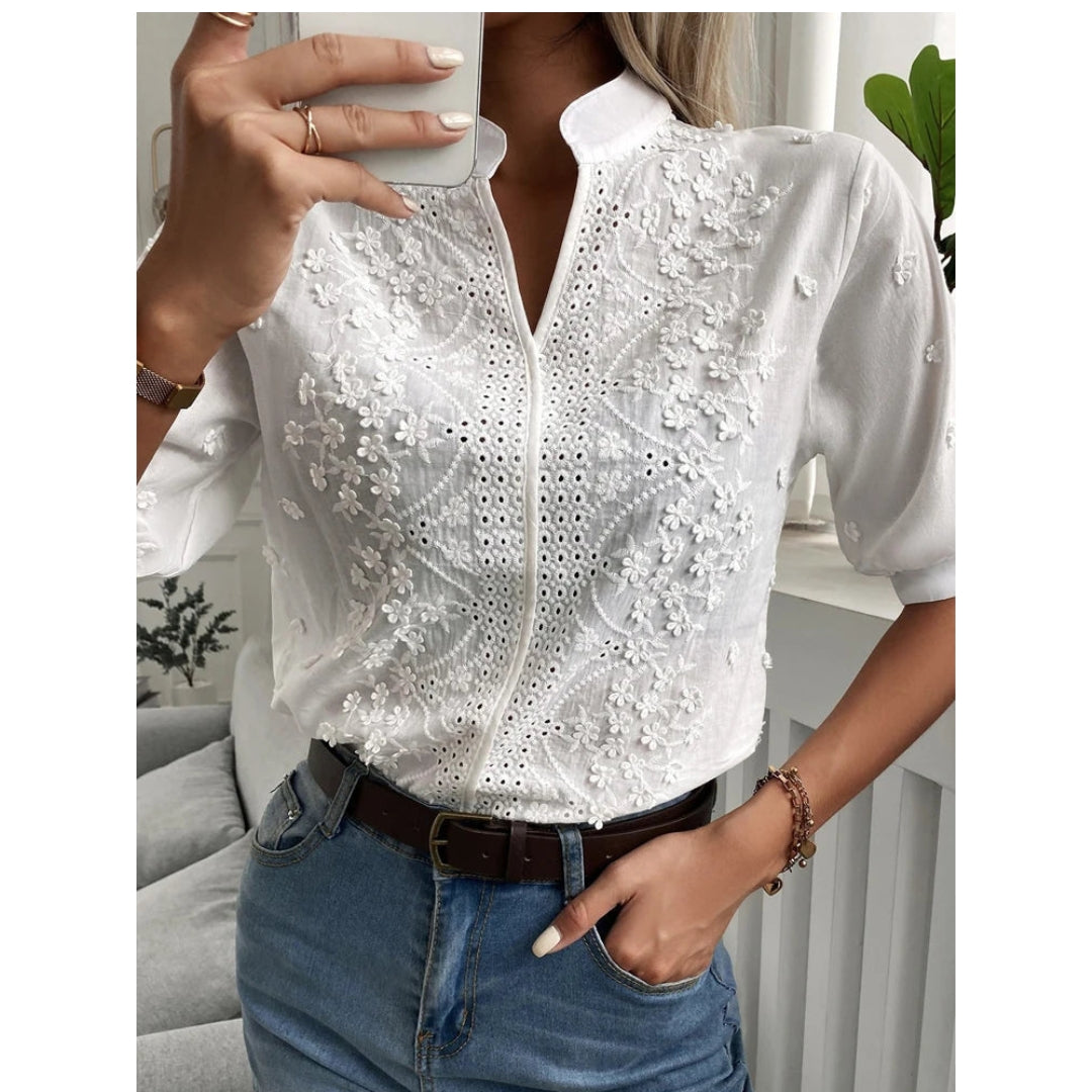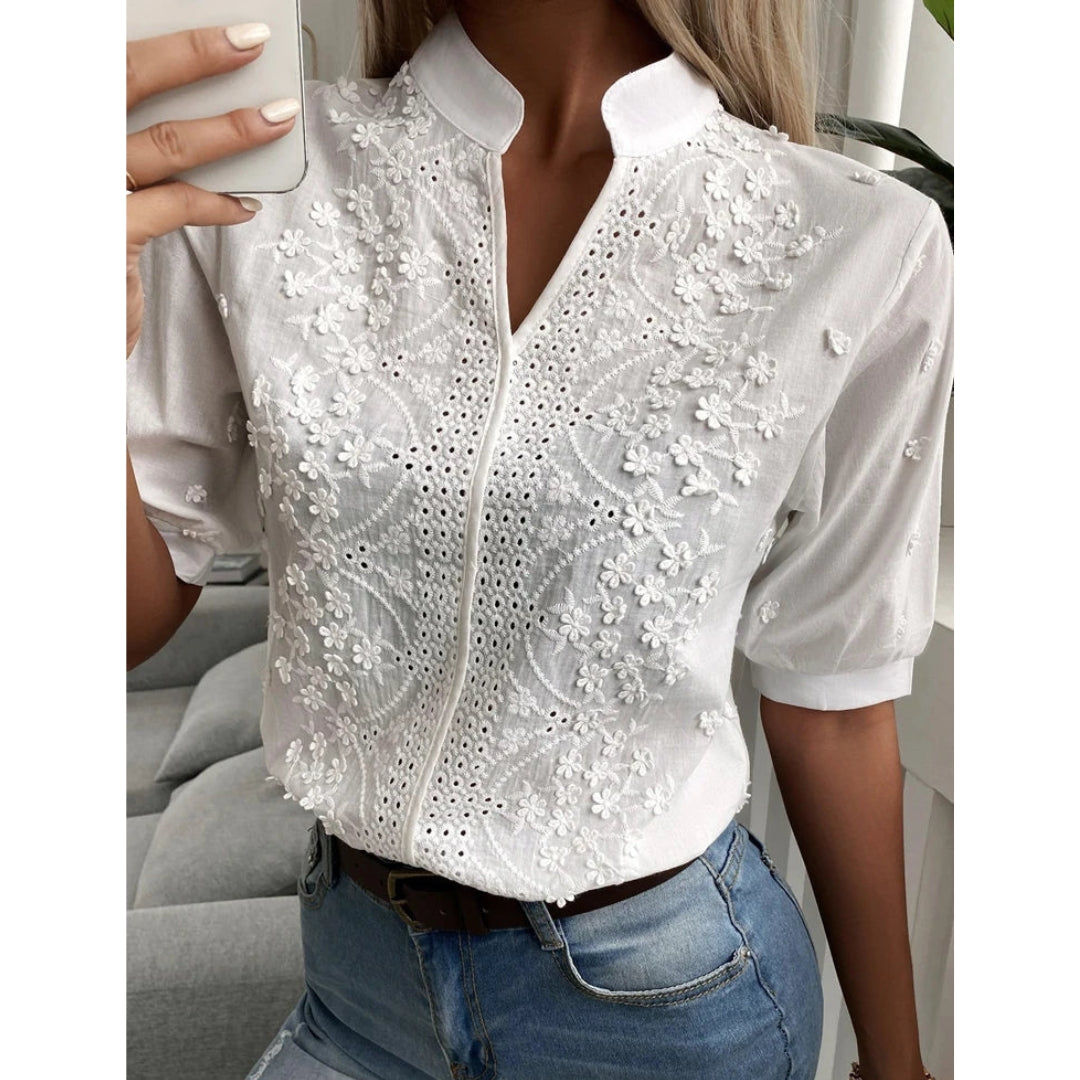 Lily – Chemisier élégant à col en V, manches courtes et coupe décontractée