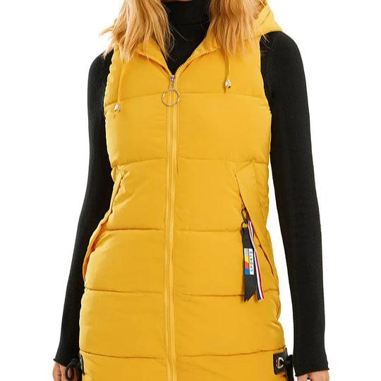Liora - Veste chic à capuche sans manches avec poches zippées