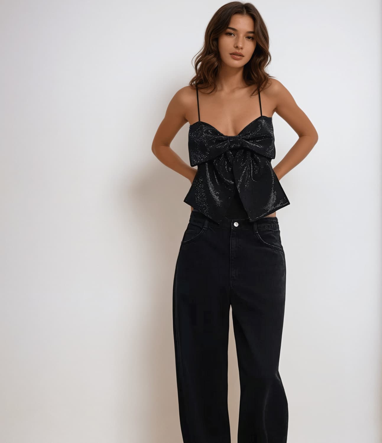 Luna – Haut glamour élégant avec nœud décoratif et bretelles réglables