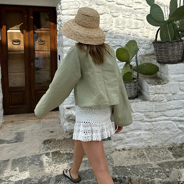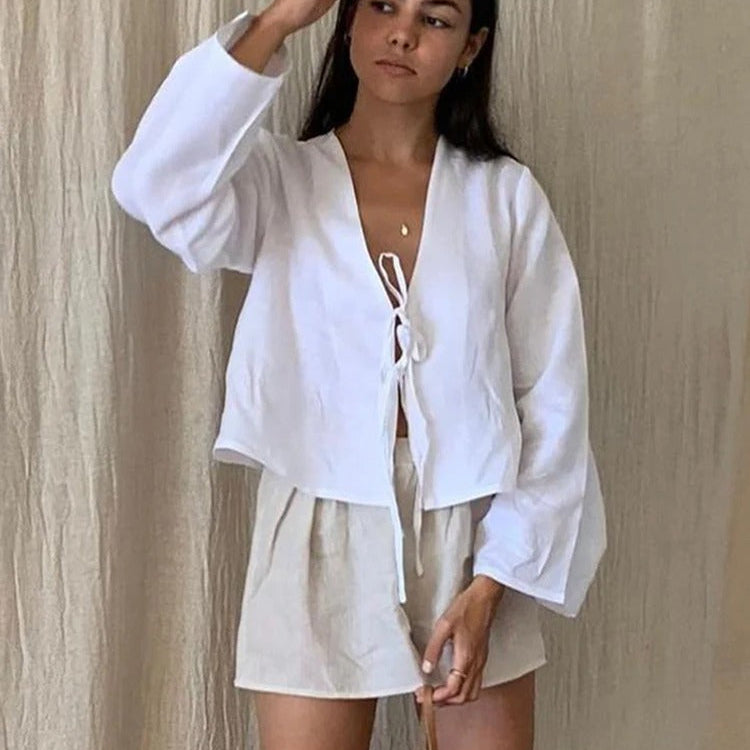 Maya – Blouse courte décontractée avec col en V profond et manches longues