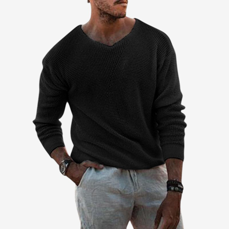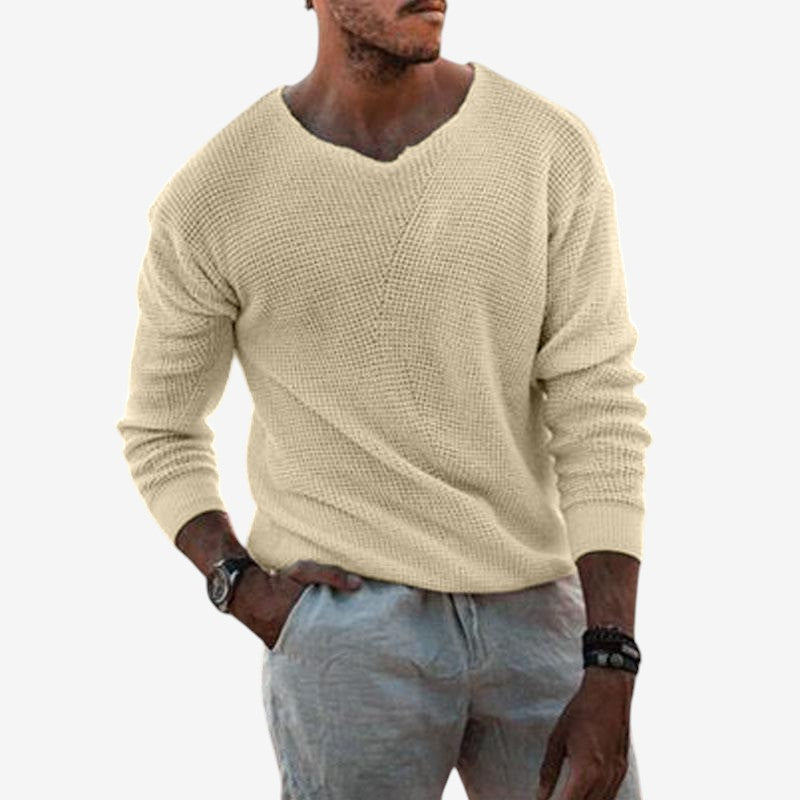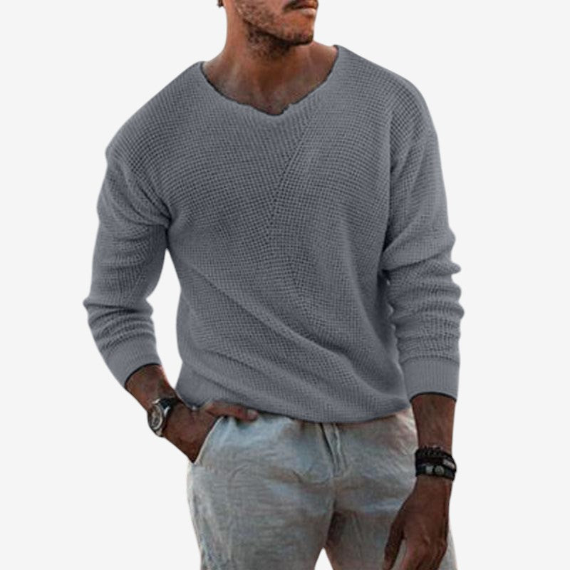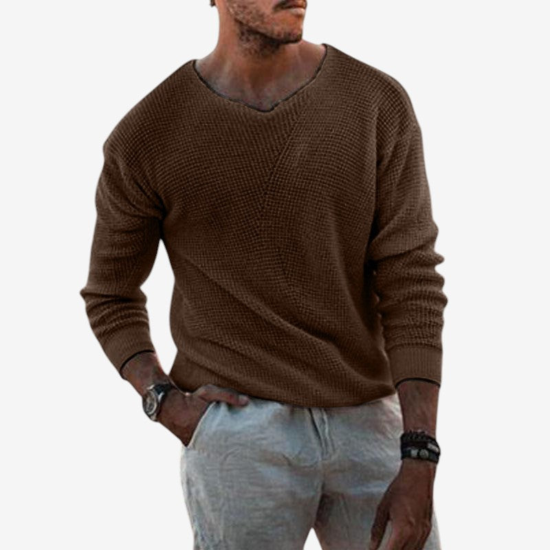 Ce pull présente un col en V et des manches longues, offrant un confort détendu pour la journée. La coupe ample permet une grande liberté de mouvement, idéal pour superposer ou pour les activités quotidiennes.