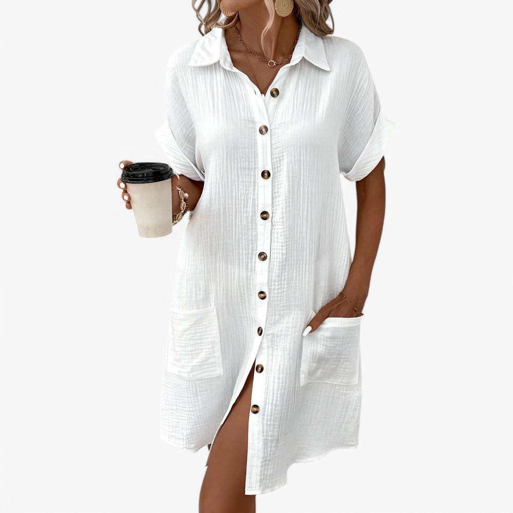 Olivia – Robe élégante boutonnée sur le devant avec coupe décontractée au genou