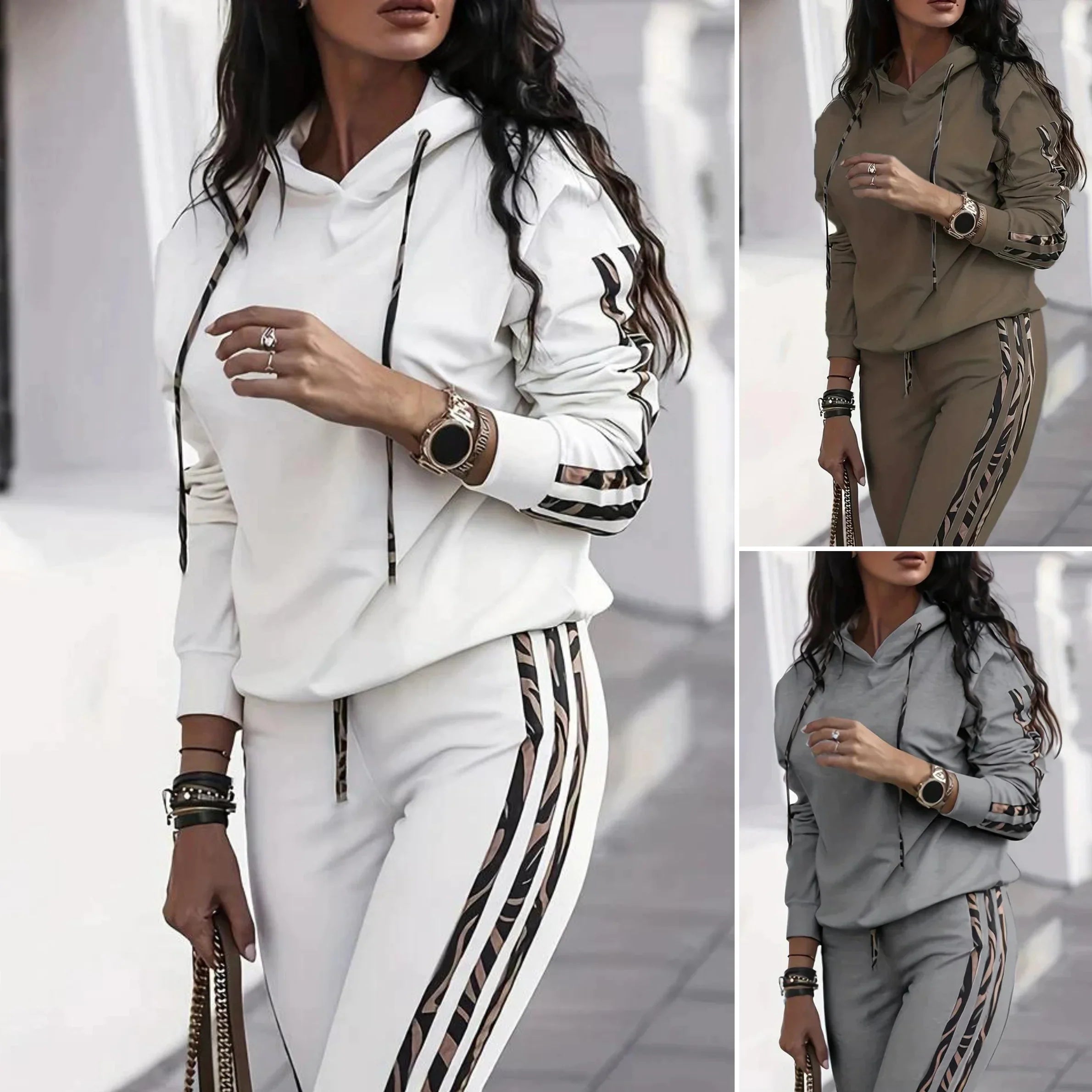 Cet ensemble à capuche rayé est le mélange parfait de mode et de fonctionnalité. Son tissu extensible léger assure une facilité de mouvement, tandis que la coupe ample offre un confort tout au long de la journée. Que vous vous prélassiez à la maison, que vous rencontriez des amis ou que vous fassiez des courses, ce pull est un choix polyvalent qui vous garde au chaud et élégant.