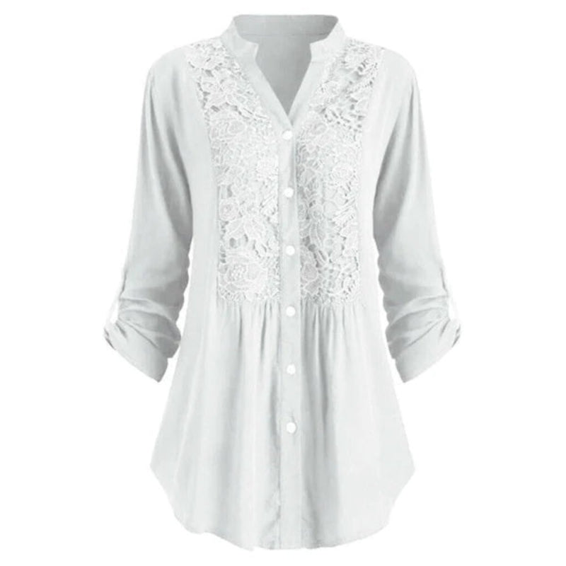 Riley – Chemisier élégant à manches longues avec manches bouffantes et col montant