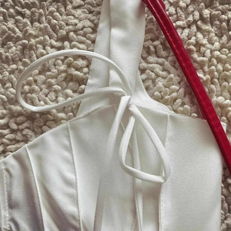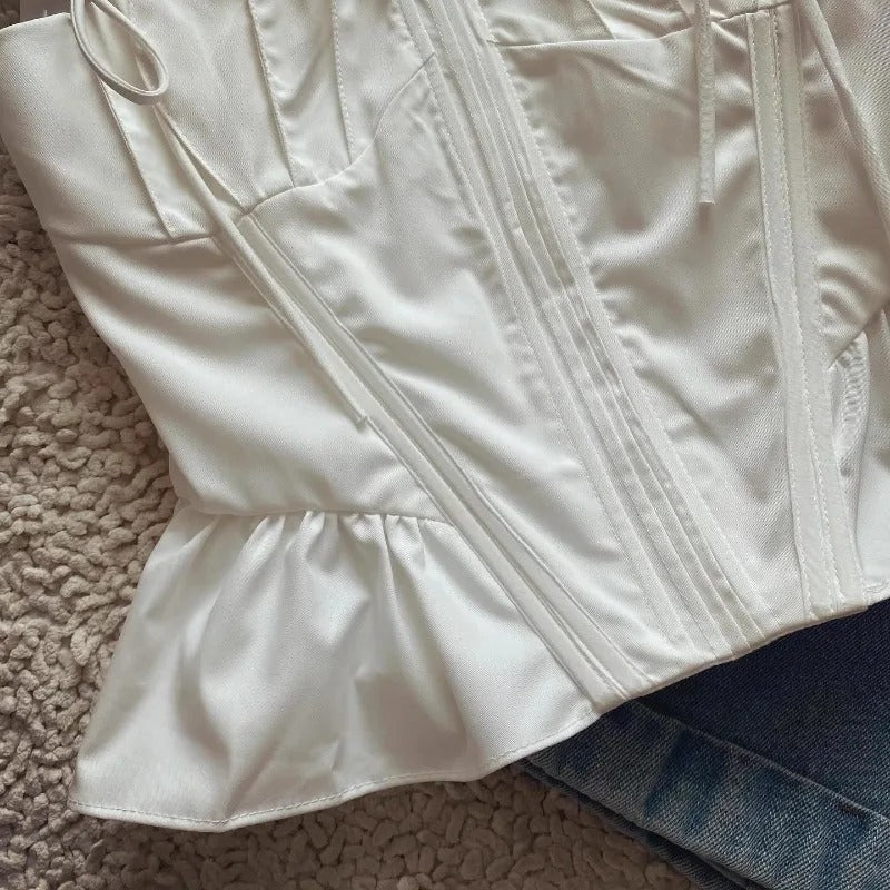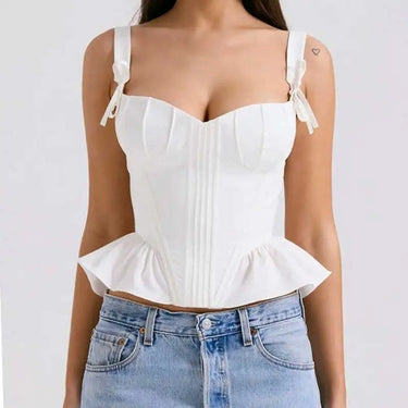 Savannah – Haut corset élégant avec fermeture éclair sur le devant et bretelles à nœud