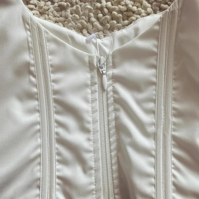 Ce corset élégant est doté d'une fermeture éclair sur le devant qui ajoute une touche contemporaine à son design classique. Les bretelles réglables assurent un ajustement confortable tout en ajoutant une touche de charme à l'ensemble. Idéal en toute occasion, ce haut offre une coupe flatteuse et une multitude de styles.