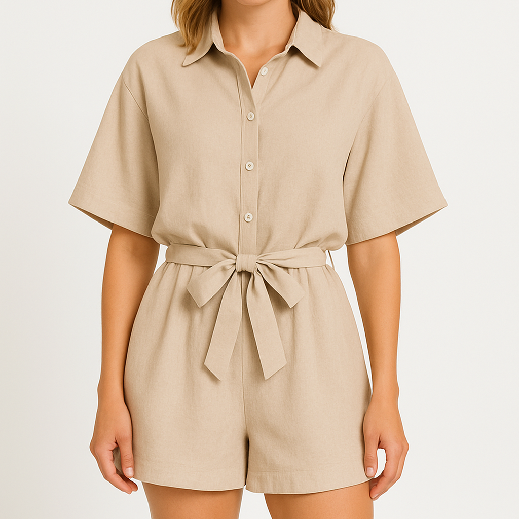 Sienna – Combinaison boutonnée avec taille ceinturée et col classique