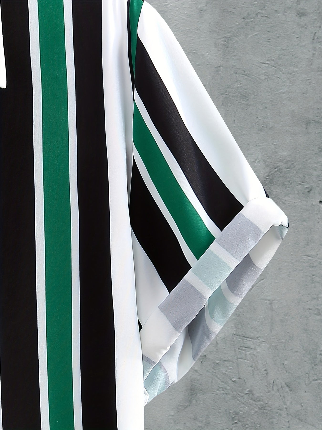 - Le motif rayé audacieux apporte une touche moderne aux tenues décontractées.