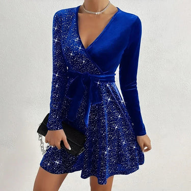Cette robe offre un look chic et sophistiqué sans effort grâce à ses manches longues élégantes et sa coupe flatteuse. La ceinture à nouer qui serre la taille sublime la silhouette, créant une allure raffinée et gracieuse. Idéale pour les soirées, elle apporte la touche d'éclat idéale pour vous démarquer. Parfaite pour celles qui souhaitent faire forte impression lors de toutes les occasions.