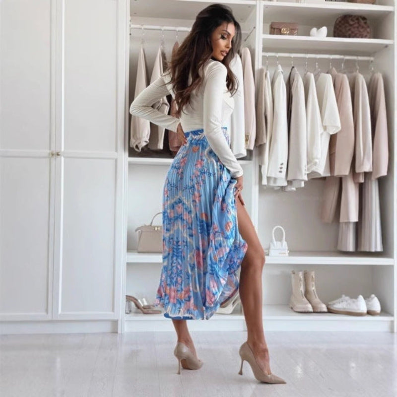 Sophie – Jupe midi plissée avec fente latérale et coupe fluide