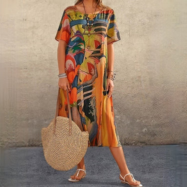 Zanaria - Robe ample décontractée à col rond et motif imprimé artistique