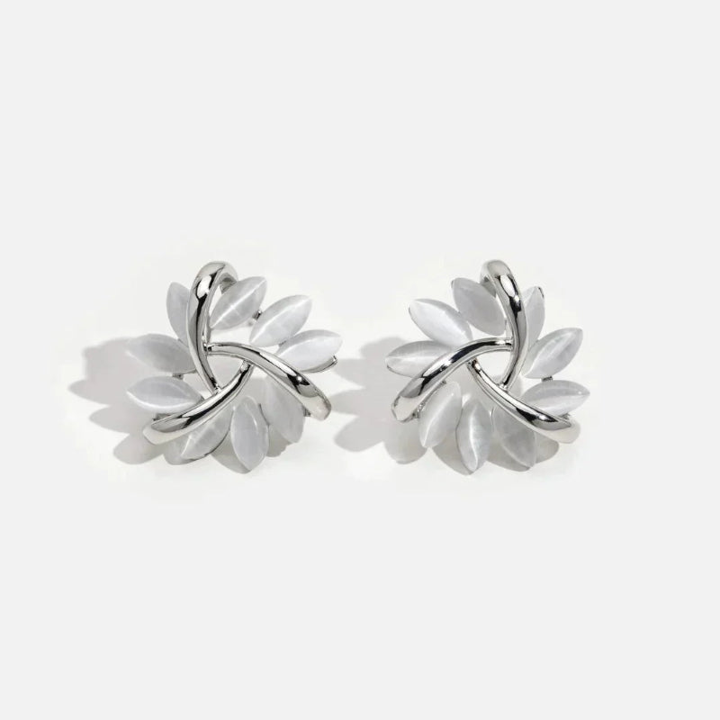 Mira - Boucles d'oreilles pétales avec détails en opale Boucles d'oreilles sculptées avec pétales superposés et pierres centrales brillantes