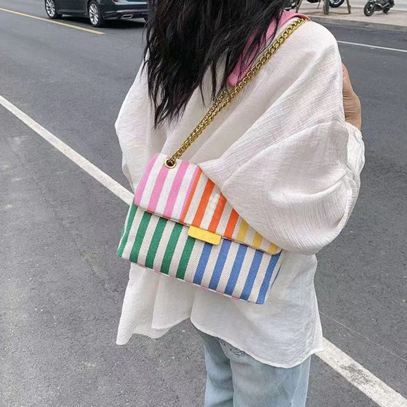Olivia – Sac à Épaule en Toile avec Rayures Arc-en-Ciel