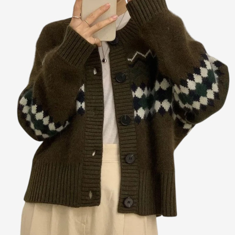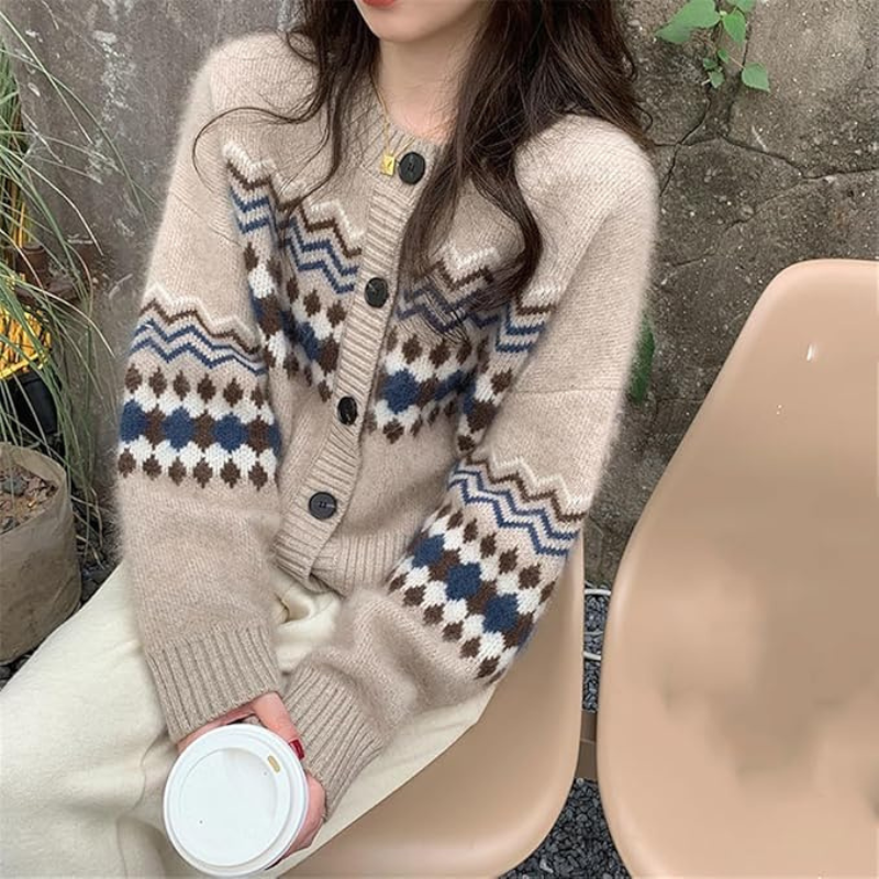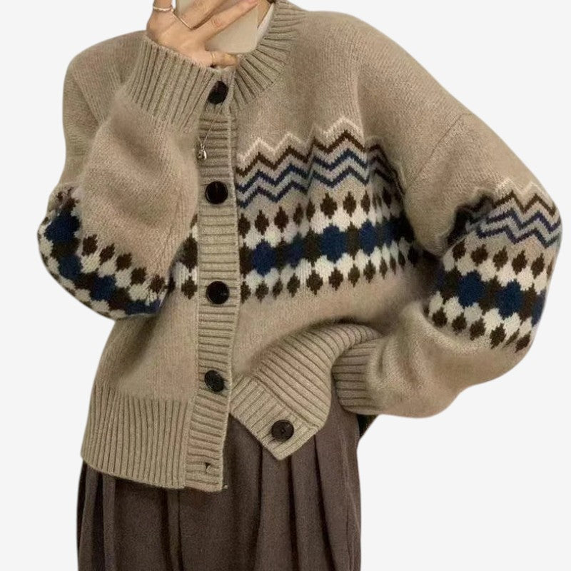 Brielle – Pull imprimé à manches longues et col rond, coupe ample