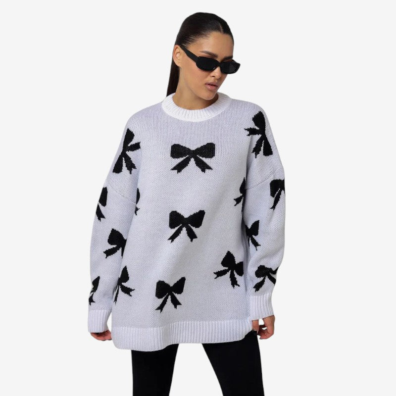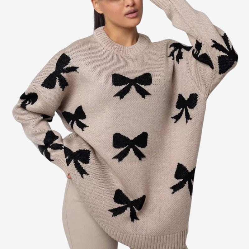 Carla – Pull à manches longues avec nœud et col rond