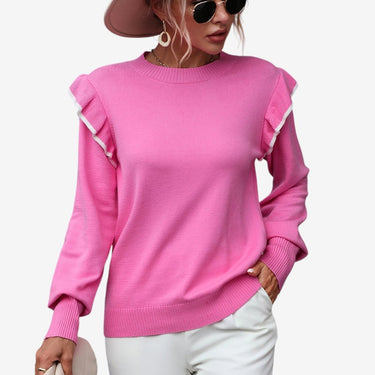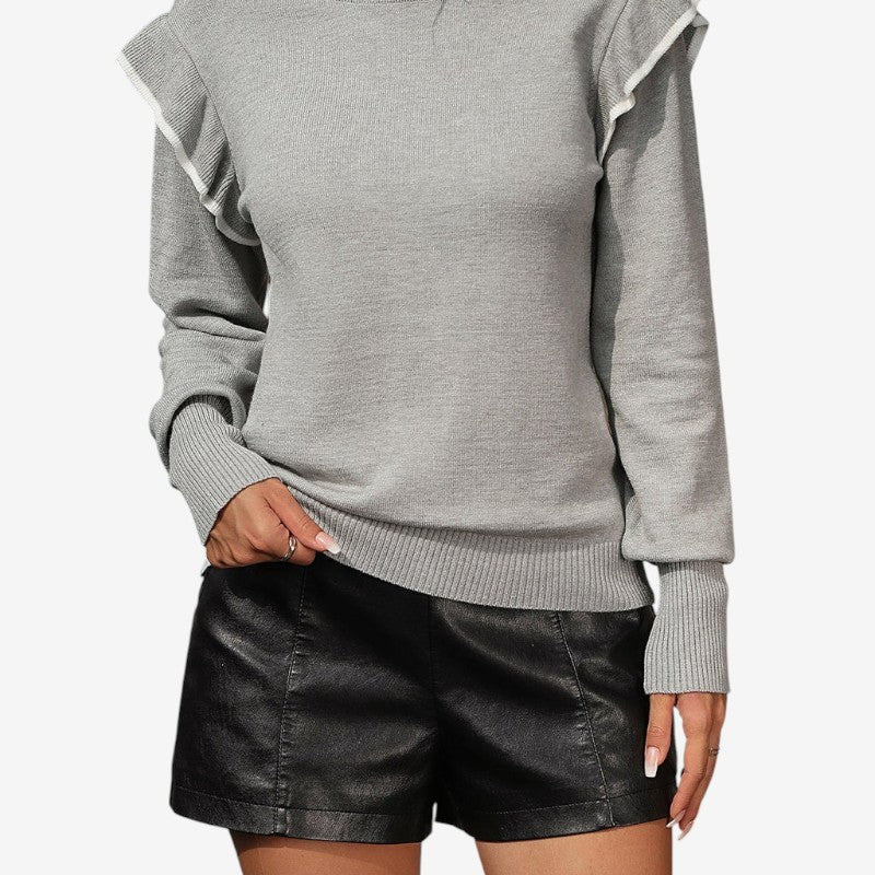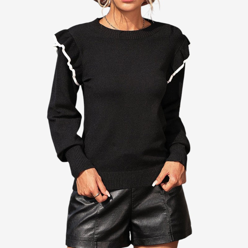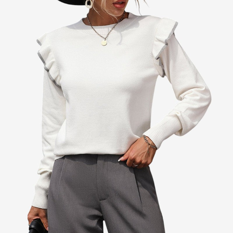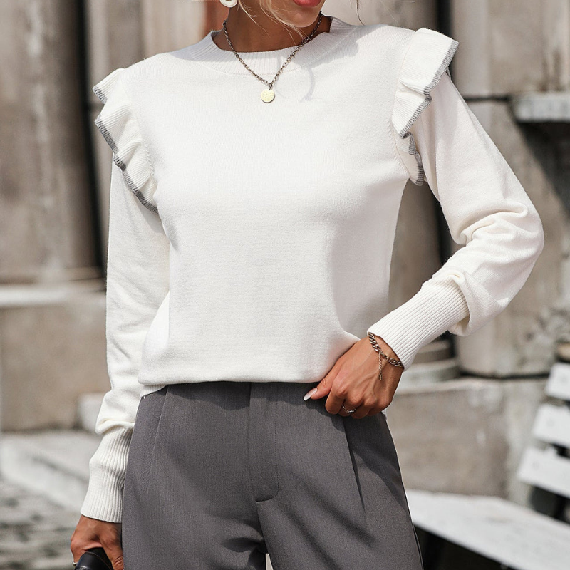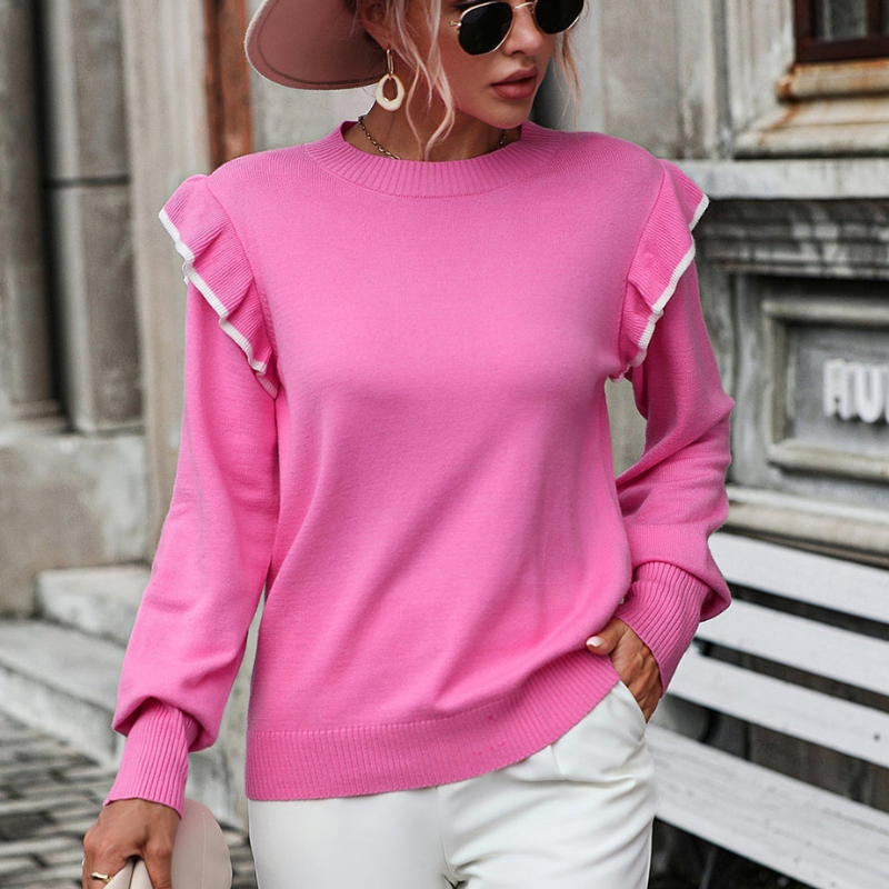 Ce pull à manches longues présente une encolure ronde et un design tricoté simple, offrant un style polyvalent adapté au superposition ou au port seul. Il se marie facilement avec des tenues décontractées pour un usage quotidien.
