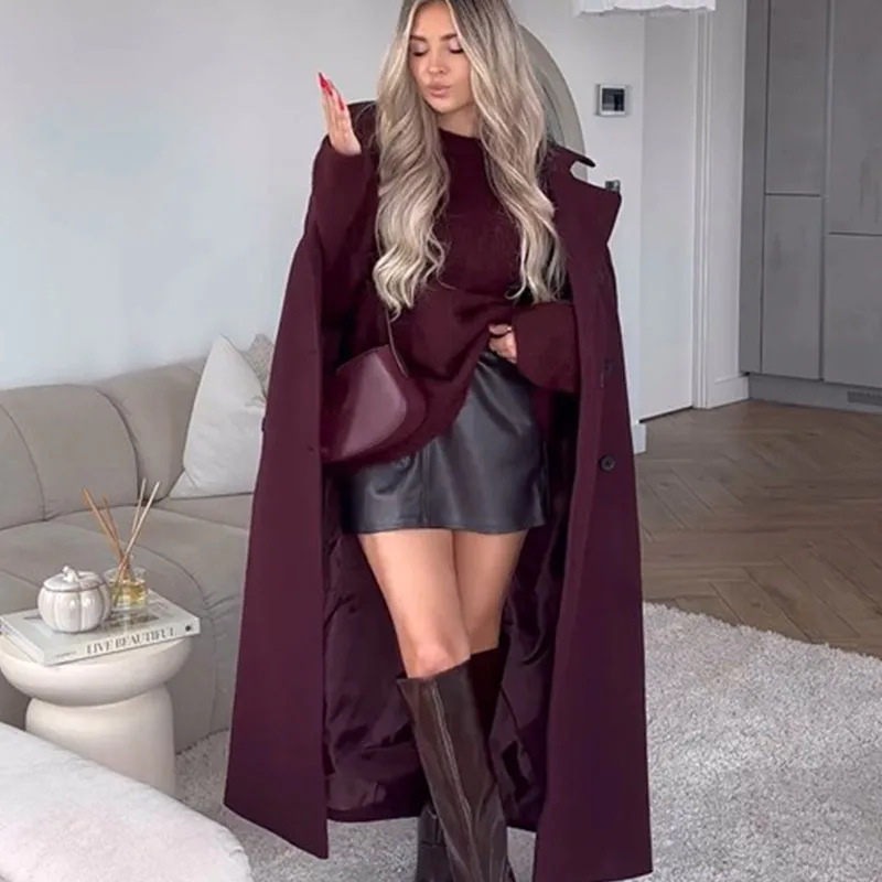Everly – Manteau à manches longues avec col à revers, ceinture et poches